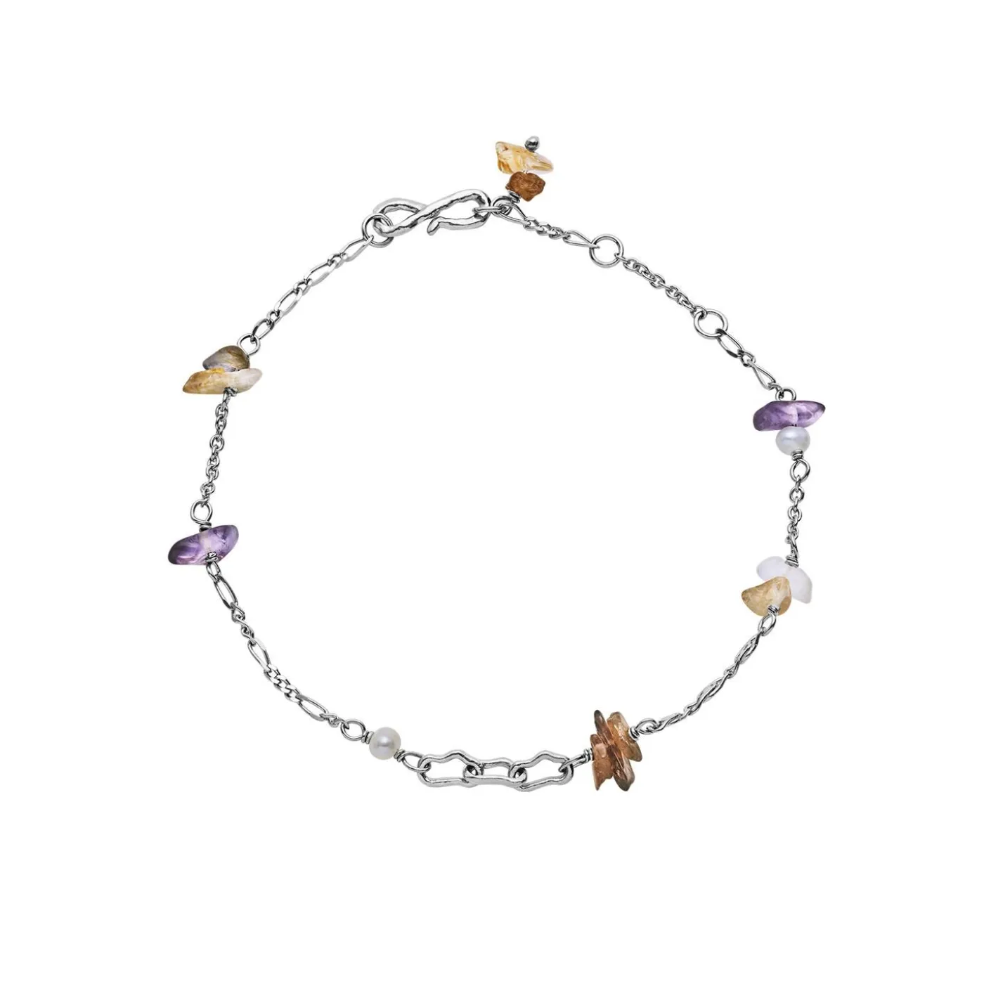 Annika Armbåndet En Samling Af Små, Spirituelle Og Farverige Halvædelsten Der Smukt Og Tilfældigt Forenes Med Forskellige Kæder.