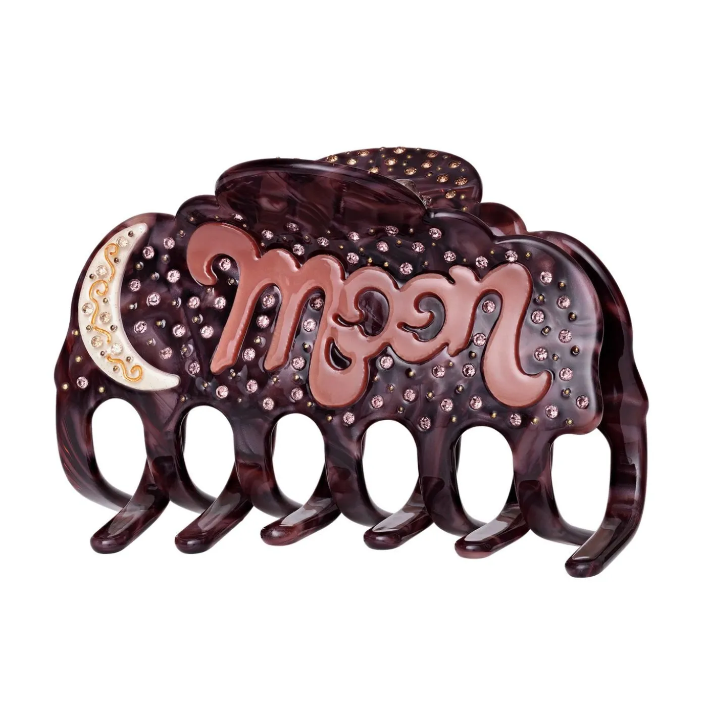 Den Magiske Hårklemme, Cosmo, Er Dekoreret Med En Skinnende Halvmåne, Og Så Er Ordet Moon Skrevet På Fineste Vis.