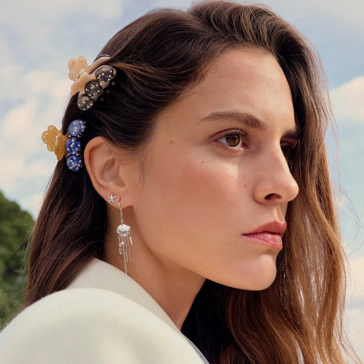 De Tre Muslinger På Kerang Hårspændet Holder Dit Sommer Hår På Plads, Og Tilføjer Samtidig En Portion Glamour Fra Rhinsten, Der Glimter Som Solstråler På En Havoverflade.