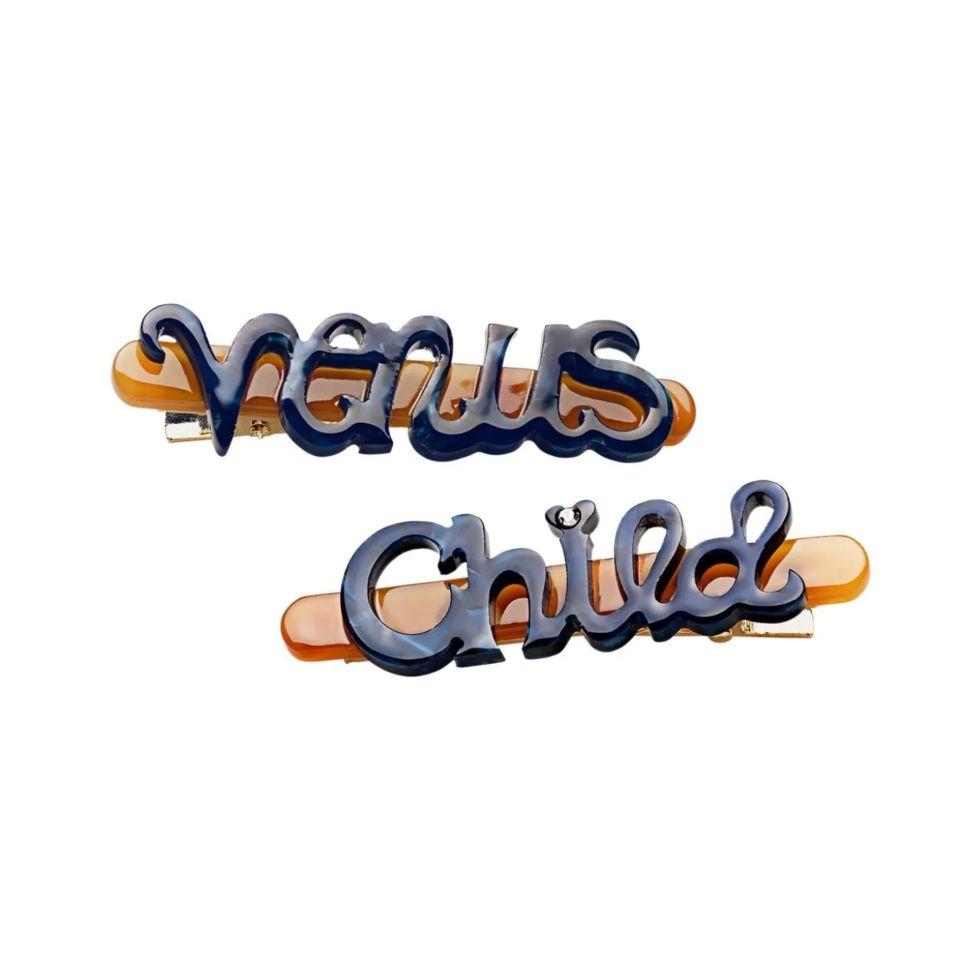 De Er Lavet I Et Smukt Mørkeblå Og Karamelbrunt Acetat Og Udsmykket Med En Lysegrå Krystal.