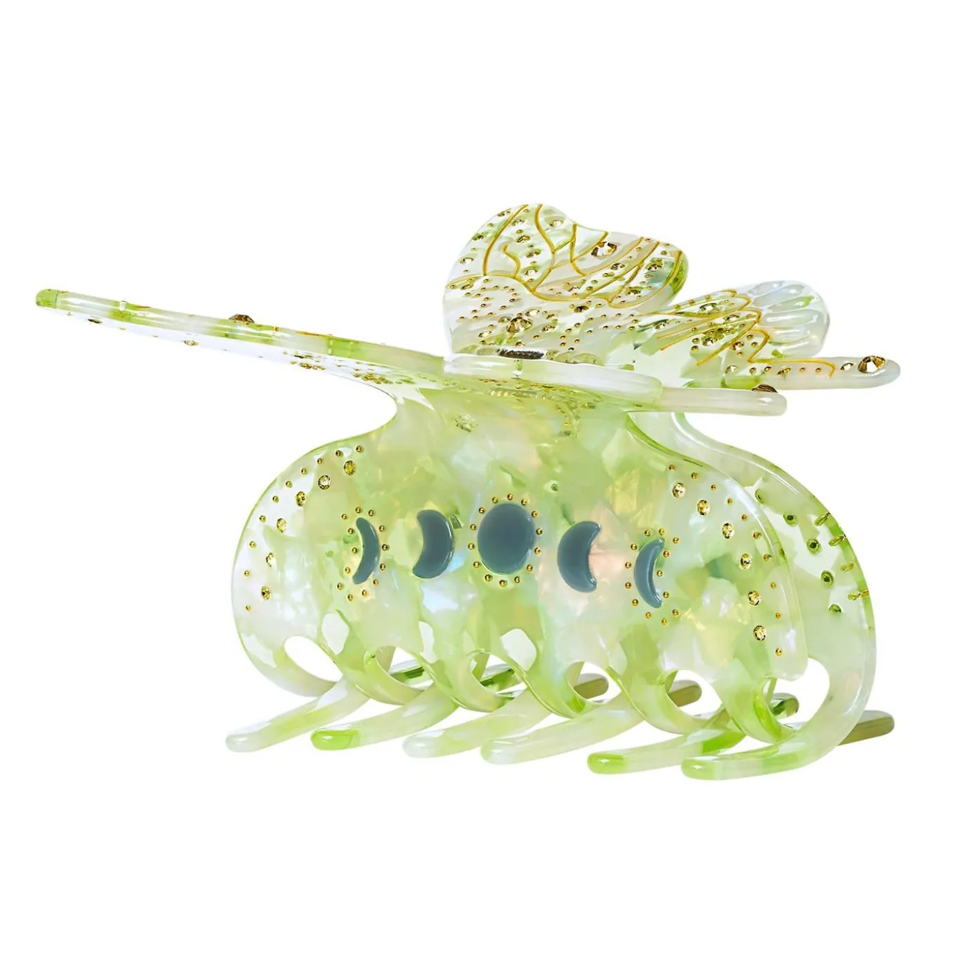 Nabi Er En Stor, Smuk Sommerfugl Til Dit Hår. Sommerfugle Repræsenterer Nye Begyndelser Og Håb. Hårklemmen Er Lavet Af Iriserende Acetat Og Dekoreret Med Lysegule Krystaller.