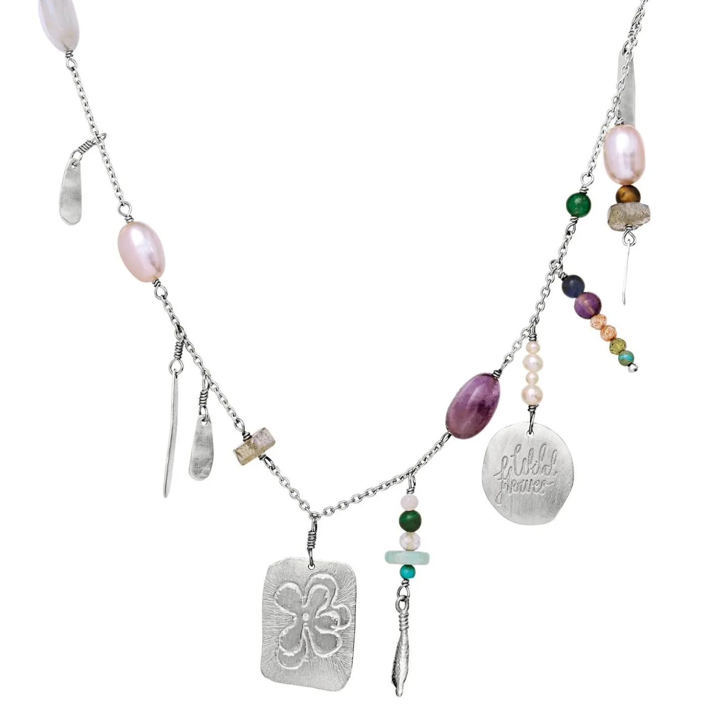Celia Er Den Flotteste Halskæde Med Vedhæng I Alle Regnbuens Farver. På Et Af Vedhængene Står Der Wild Flower, Som Skal Minde Dig Om At Bryde Fri Og Turde Vokse Som De Vilde Blomster.