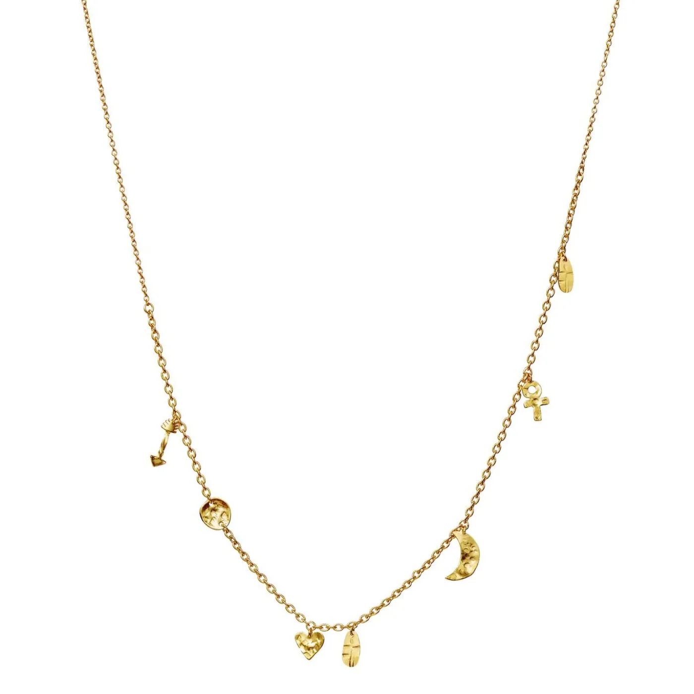 Cresida Necklace Er En Del Af Maanesten’S A/W23-Kollektion, Moon Hunter, Der Er Inspireret Af Den Græske Gudinde, Artemis, Gudinde For Jagt Og Beskytter Af Unge Kvinder. Halskæden Er En Samling Af De Smukke Symboler, Der Findes I Artemis’ Univers: Pilen, Kvindetegnet, Hjertet Og Artemis’ Mest Brugte Symbol, Månen.