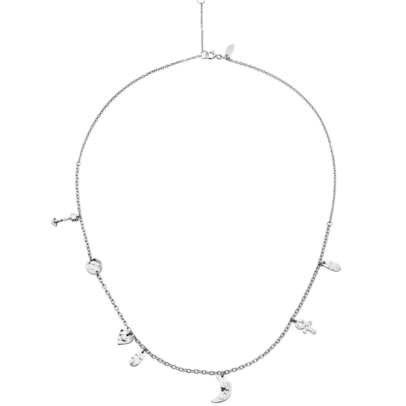 Cresida Necklace Er En Del Af Maanesten’S A/W23-Kollektion, Moon Hunter, Der Er Inspireret Af Den Græske Gudinde, Artemis, Gudinde For Jagt Og Beskytter Af Unge Kvinder. Halskæden Er En Samling Af De Smukke Symboler, Der Findes I Artemis’ Univers: Pilen, Kvindetegnet, Hjertet Og Artemis’ Mest Brugte Symbol, Månen.