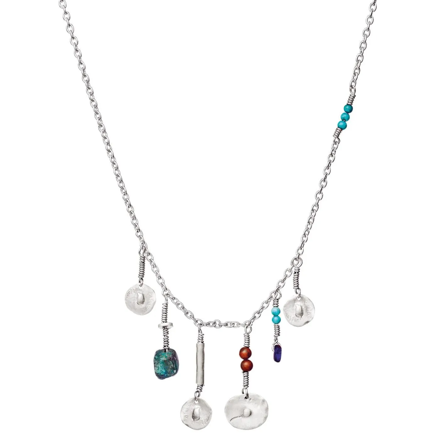 Glow Necklace Er Foruden Fine, Små, Gyldne Vedhæng Dekoreret Med Kraftfulde Sten. Turkis Har Længe Været Brugt Som En Beskyttende, Fredfyldt Amulet, Mens Den Røde Jaspis Er En Sten For Tryghed, Balance Og Jordbundethed.Halskæden Er En Del Af Samarbejdet, Olga Bonne X Maanesten, Der Fortolker Barndommens Oplevelser I Naturen Og Følelsen Af At Fortabe Sig I Skoven, Ved Markerne Og Havet. En Tid Med Utæmmet Fascination Og Magi, En Umiddelbar Vildskab I Hjertet Og Friheden Til At Følge Sin Egen Intuition Og Retning. Egenskaber, Der Er Så Lette At Miste, Men Så Vigtige At Beholde. Olga Bonne X Maanesten-Kollektionen Skaber Med Sine Organiske Former Og Symboler Og Naturlige Nuancer En Forbindelse Til Det, Der Var, Og Det, Der Skal Blive.