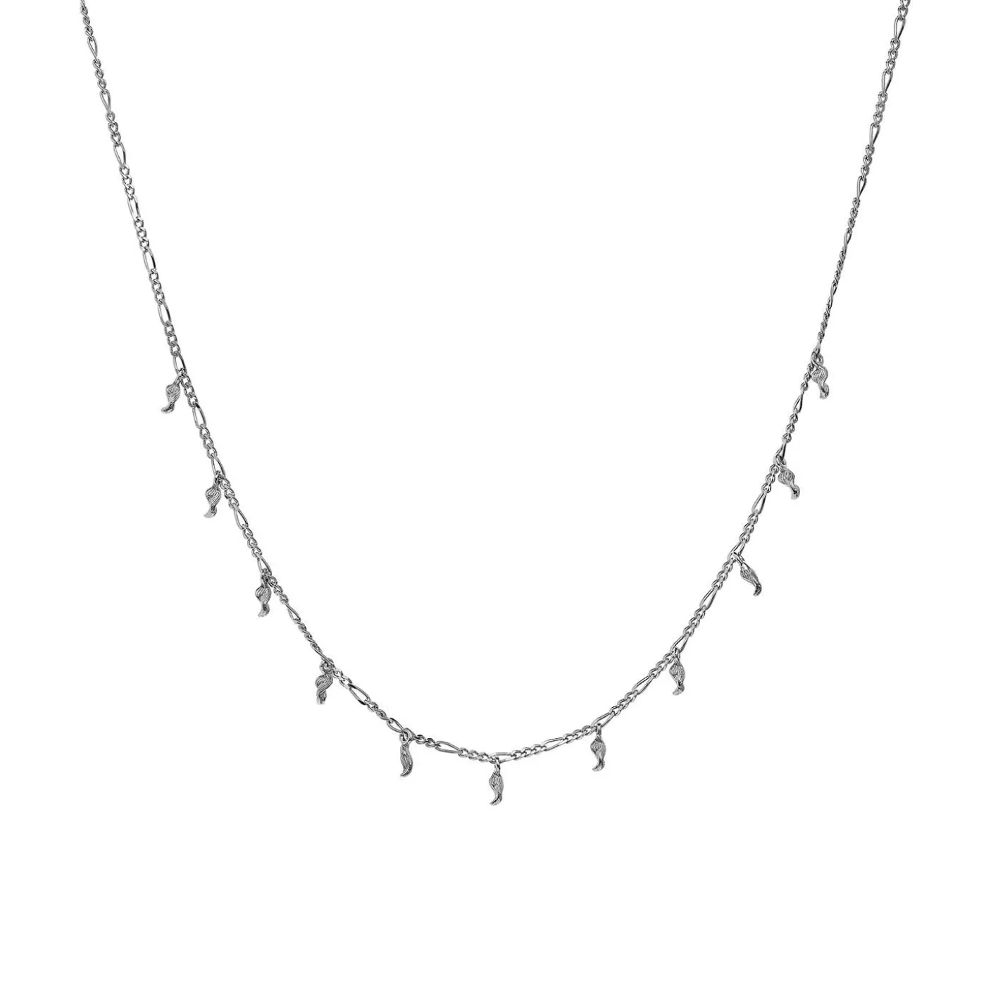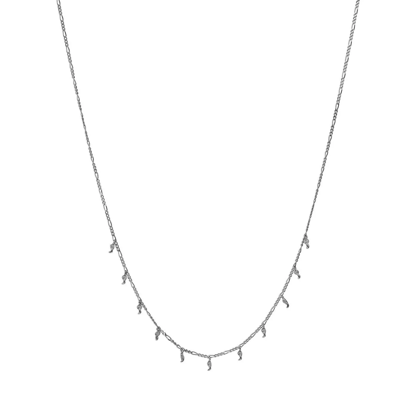 Smuk Og Simpel Halskæde Med Små Pendul-Formede Vedhæng Der, Når Du Kigger Nærmere, Har En Enkel Twistet Profil Og Tekstur.