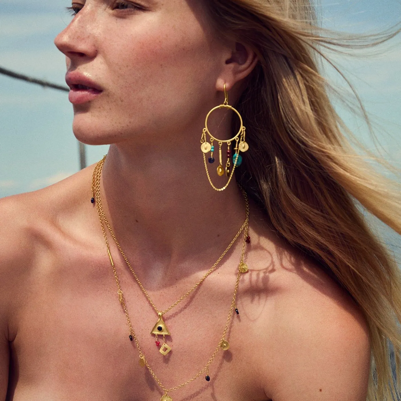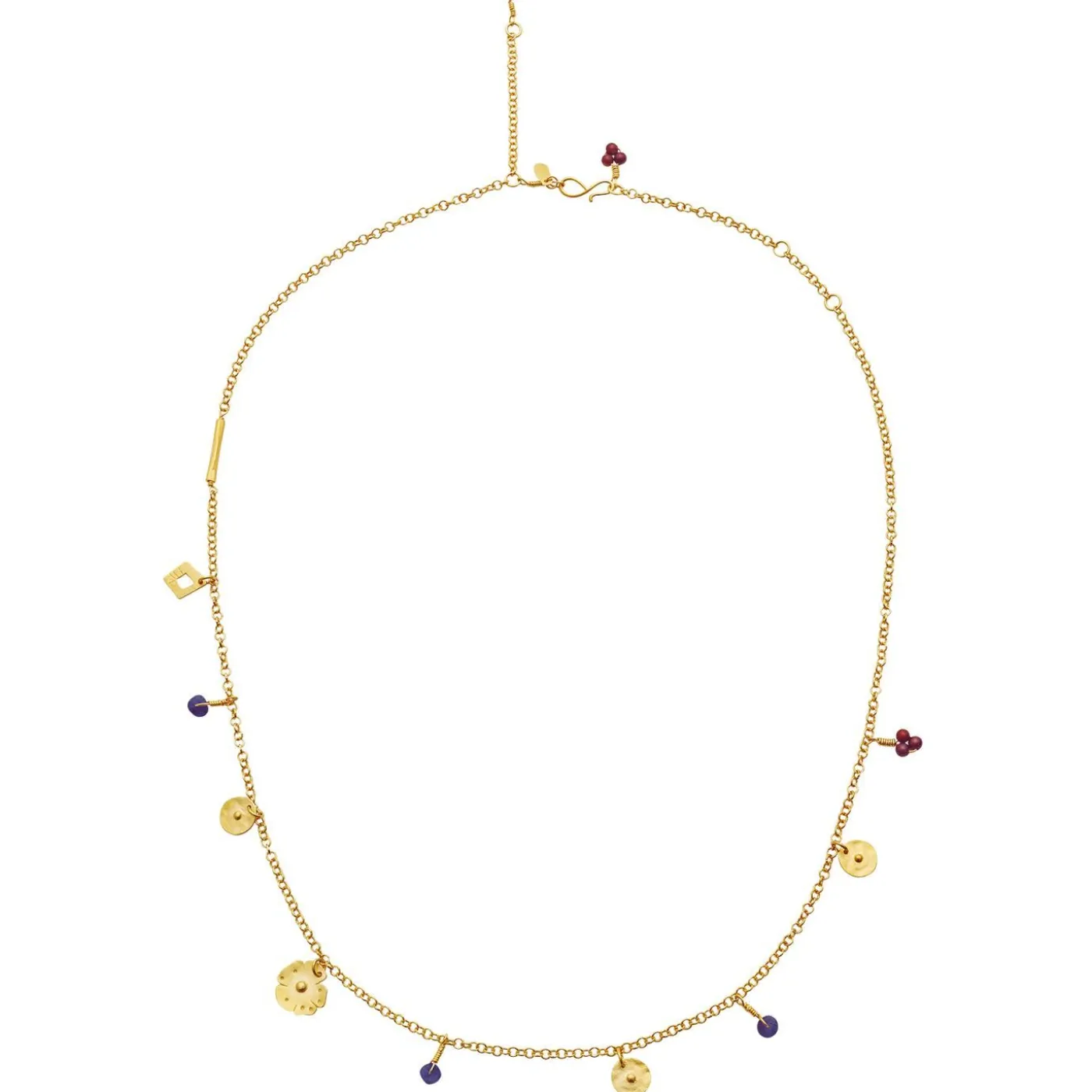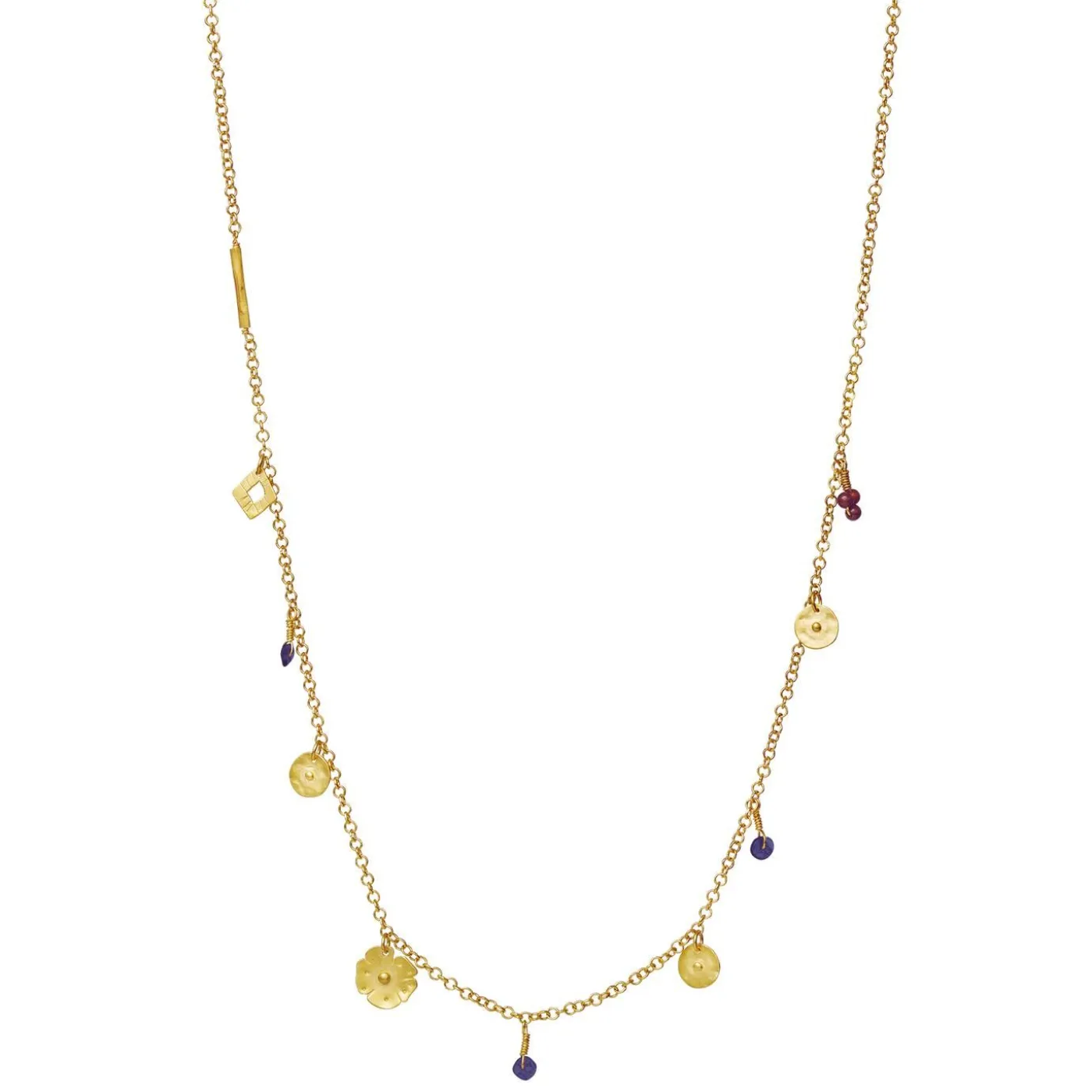 Gyldne Blomster Og Farverige Sten Er Som Små, Betydningsfulde Skatte I Memory Necklace, Der Har Sin Inspiration Fra Barndommens Skattejagt I Naturen.Halskæden Er En Del Af Samarbejdet, Olga Bonne X Maanesten, Der Fortolker Barndommens Oplevelser I Naturen Og Følelsen Af At Fortabe Sig I Skoven, Ved Markerne Og Havet. En Tid Med Utæmmet Fascination Og Magi, En Umiddelbar Vildskab I Hjertet Og Friheden Til At Følge Sin Egen Intuition Og Retning. Egenskaber, Der Er Så Lette At Miste, Men Så Vigtige At Beholde. Olga Bonne X Maanesten-Kollektionen Skaber Med Sine Organiske Former Og Symboler Og Naturlige Nuancer En Forbindelse Til Det, Der Var, Og Det, Der Skal Blive.