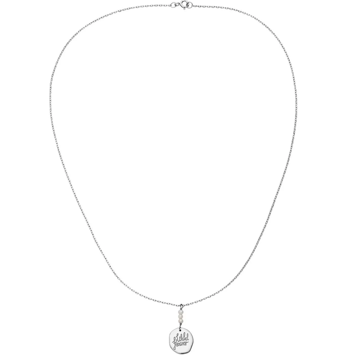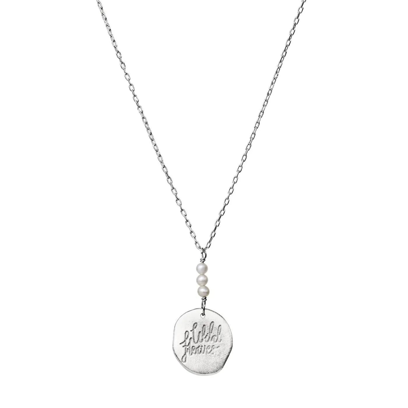 Mille Er En Elegant Halskæde Med Små Ferskvandsperler Og Et Vedhæng Med Ordene Wild Flowers.