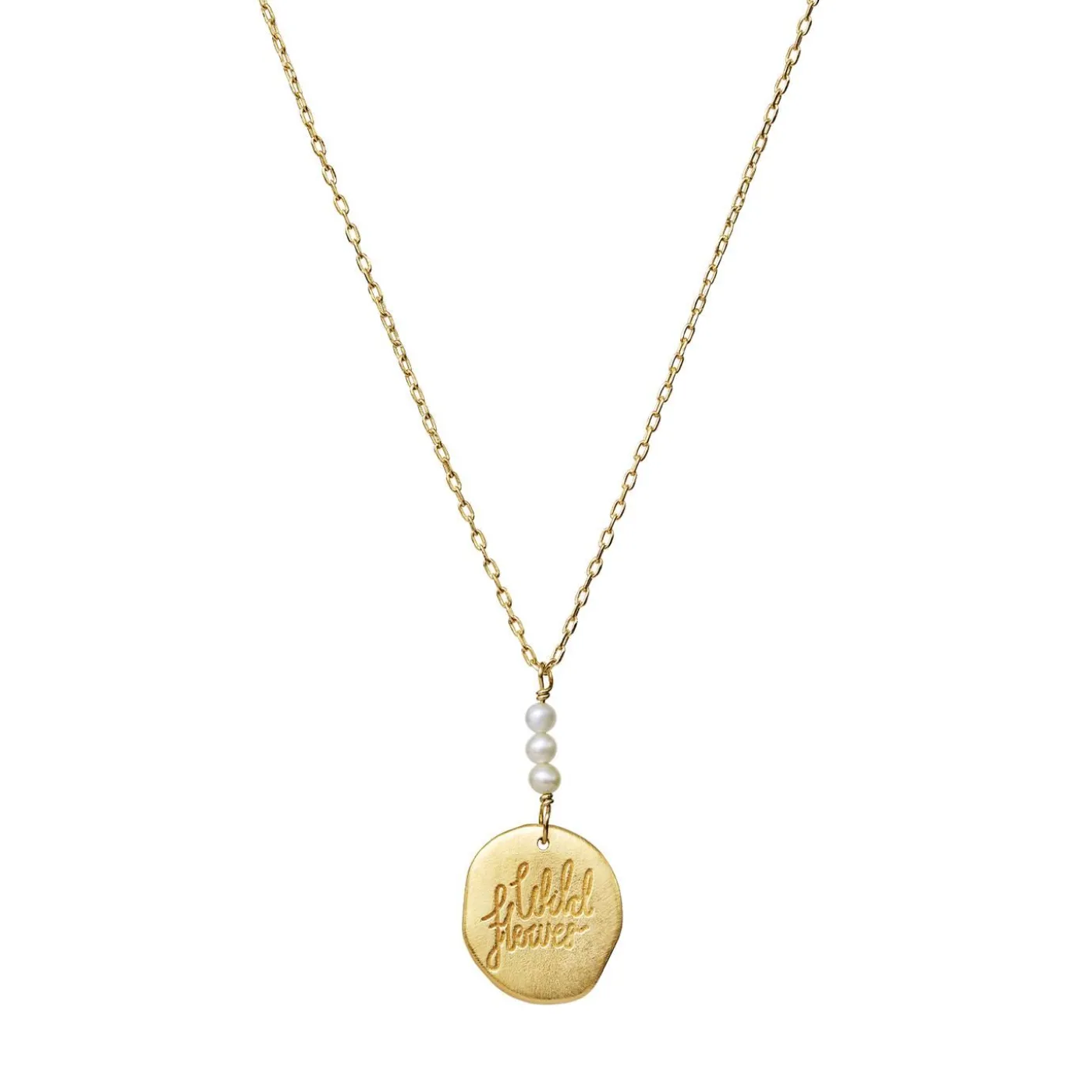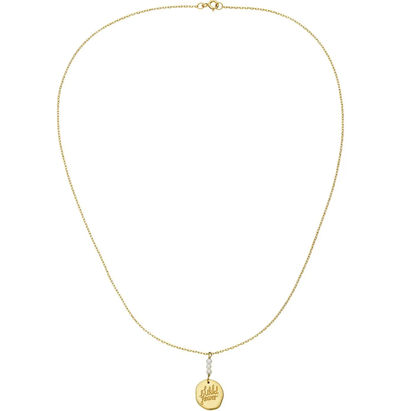 Mille Er En Elegant Halskæde Med Små Ferskvandsperler Og Et Vedhæng Med Ordene Wild Flowers.
