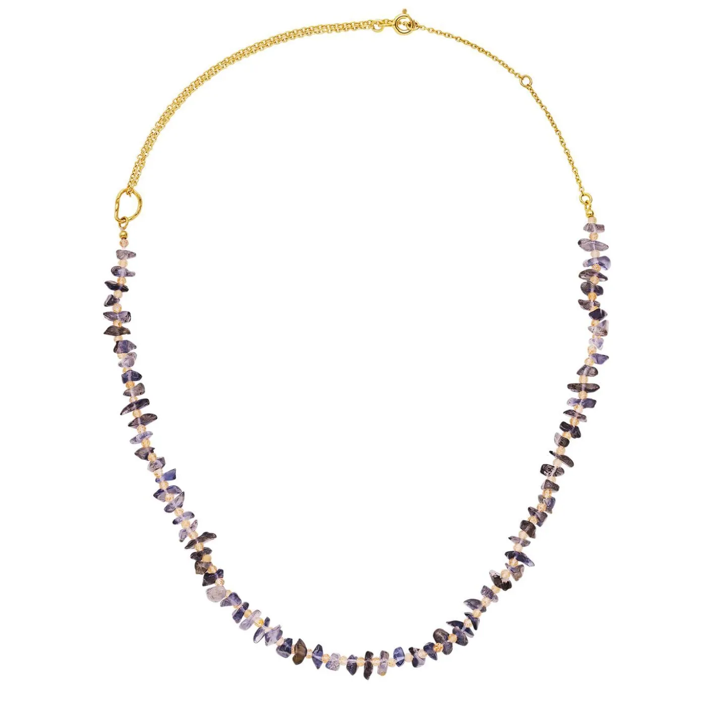 Iolit Er Drømmenes Og Rejsens Sten Og Siges At Guide Og Give Retning I Livet. Her Er Den Smukke Blå Iolit Forenet Med Den Lykkebringende Og Beskyttende Solsten. Sammen Giver De Riesme Halskæden Et Roligt Og Drømmende Udtryk. Halskæden Er Justerbar Og Kan Bæres Helt Kort Som Choker, Eller Som Halskæde I Flere Længder.