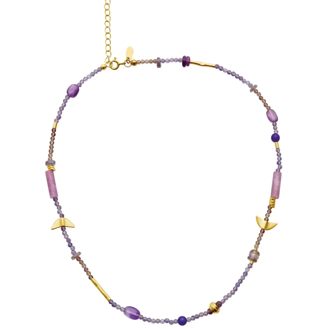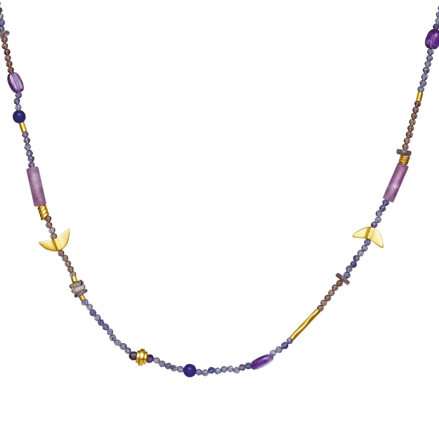 Tita Necklace Er Opbygget Af Kraftfulde Sten Som Lepidolit For Balance Og Lilla Jade For Held Og Velstand. Halskæden Har Foruden Sine Smukke, Lilla Nuancer Små Metal-Elementer Og Måner, Der Supplerer Den Dybe Farve.