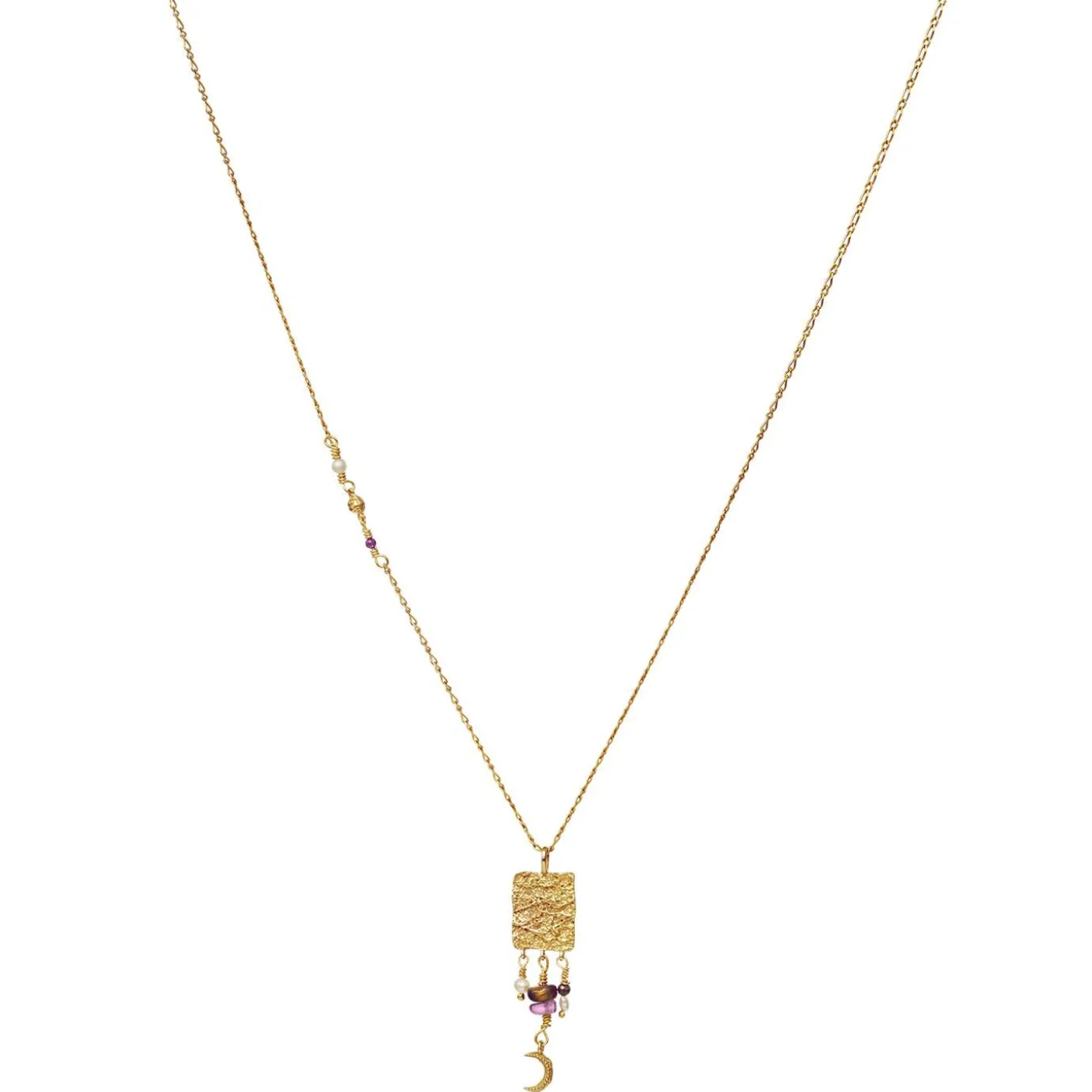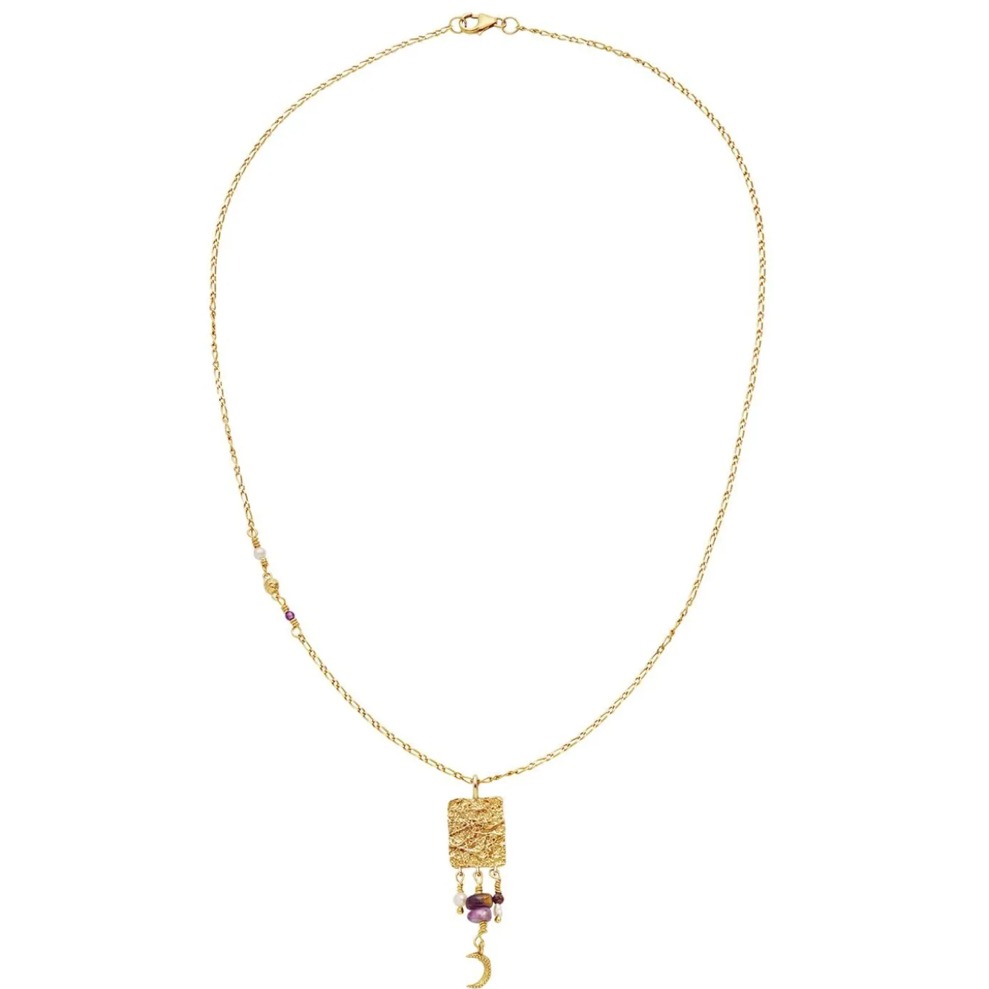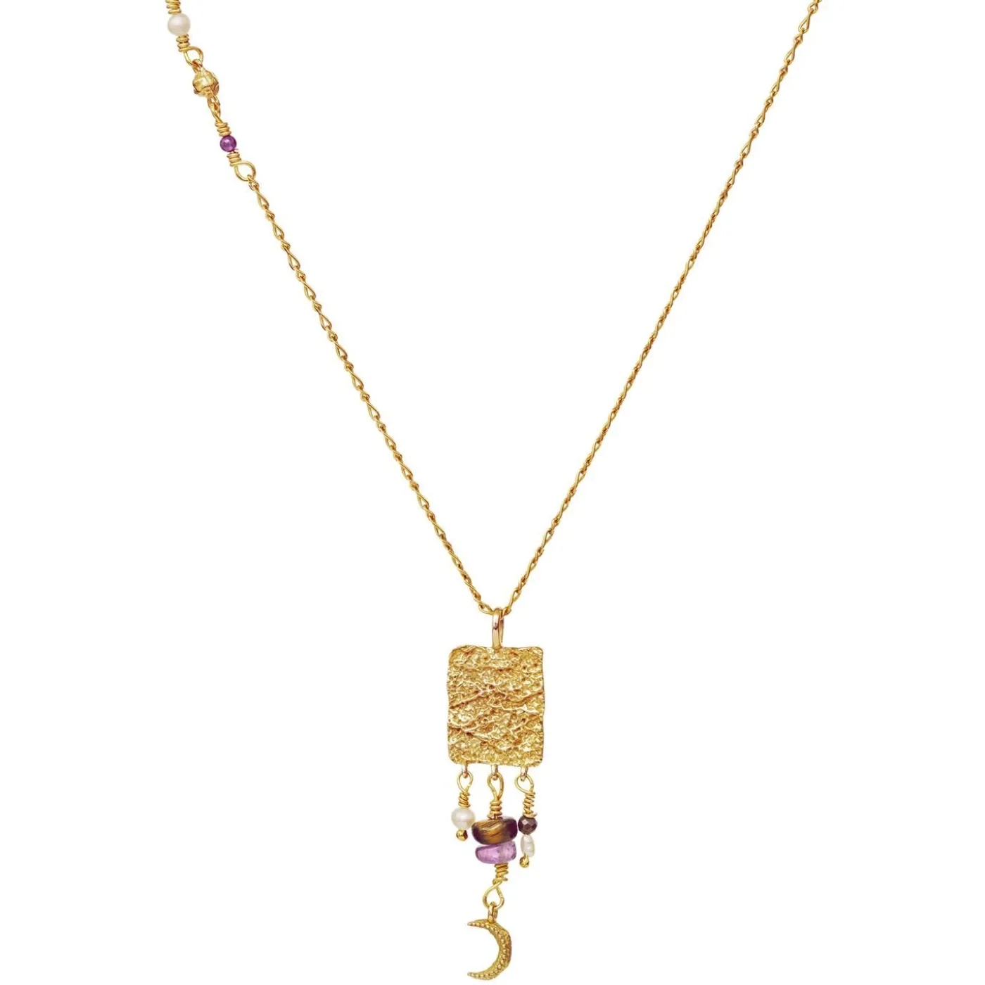 Der Findes Intet Smukkere End Nattehimlen. Uanset, Hvor Man Kigger Op I Verden, Vil Himlen En Skyfri Nat Drage Og Fascinere Os Og Få Os Til At Tænke Over De Store Spørgsmål I Livet. Himlens Aftennuancer Og Halvmåne Ses I Upcycled Night Sky Necklace, Mens Ferskvandsperlerne Skinner Som Nattens Første Stjerner.Halskæden Er En Del Af Maanestens Upcycled Recycled-Kollektion, Hvor Vores Designere Håndlaver Nye Smykker Af Tidligere Styles, Genbrugte Materialer Og Prøver På Vores Værksted I København. Der Findes Derfor Et Meget Begrænset Antal Af Smykkerne, Og De Kan Variere En Smule I Form, Farve Og Længde, Ligesom Perler Kan Variere I Nuancerne, Og Der Kan Være Spor Af Et Levet Liv. Fælles For Dem Er, At De Er Skabt Med En Kærlighed For At Give Eksisterende Materialer Nyt Liv.Materialer: Genanvendt Sterlingsølv (925) Belagt Med 18 Karat Guld, Hvid Ferskvandsperle, Granat, Tigerøje Og Ametyst.Længde: 50 Cm.