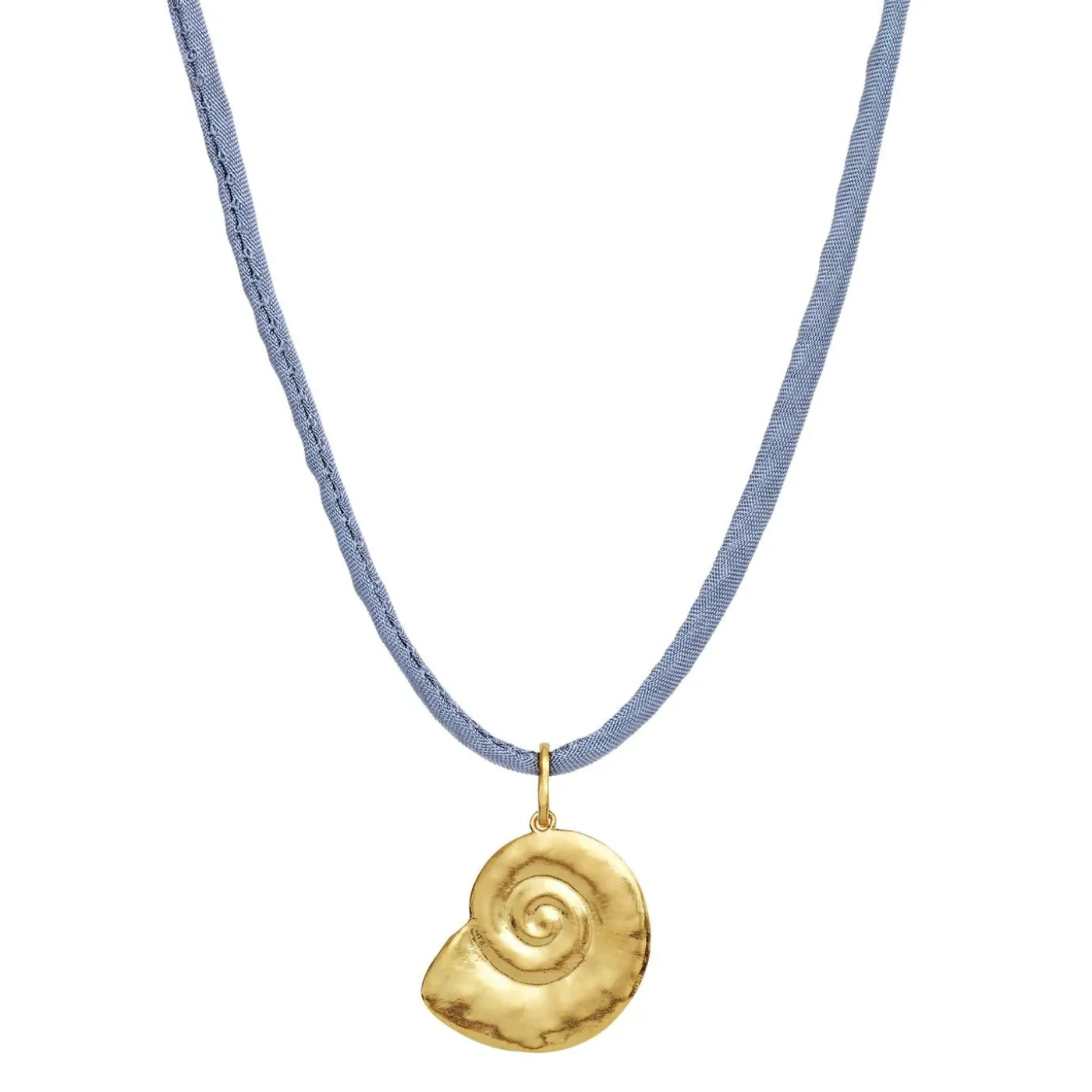 Den Organiske Søsnegleform, Der Kendetegner Ursula Halssmykket Lader Instinktivt Tankerne Vandre Mod Muslingejagt På Vide Strande I Solnedgangens Ildrøde Skær Over Havet. Den Smukke Enkle Snegleform Hænger I En Delikat Havblå Silkesnor.