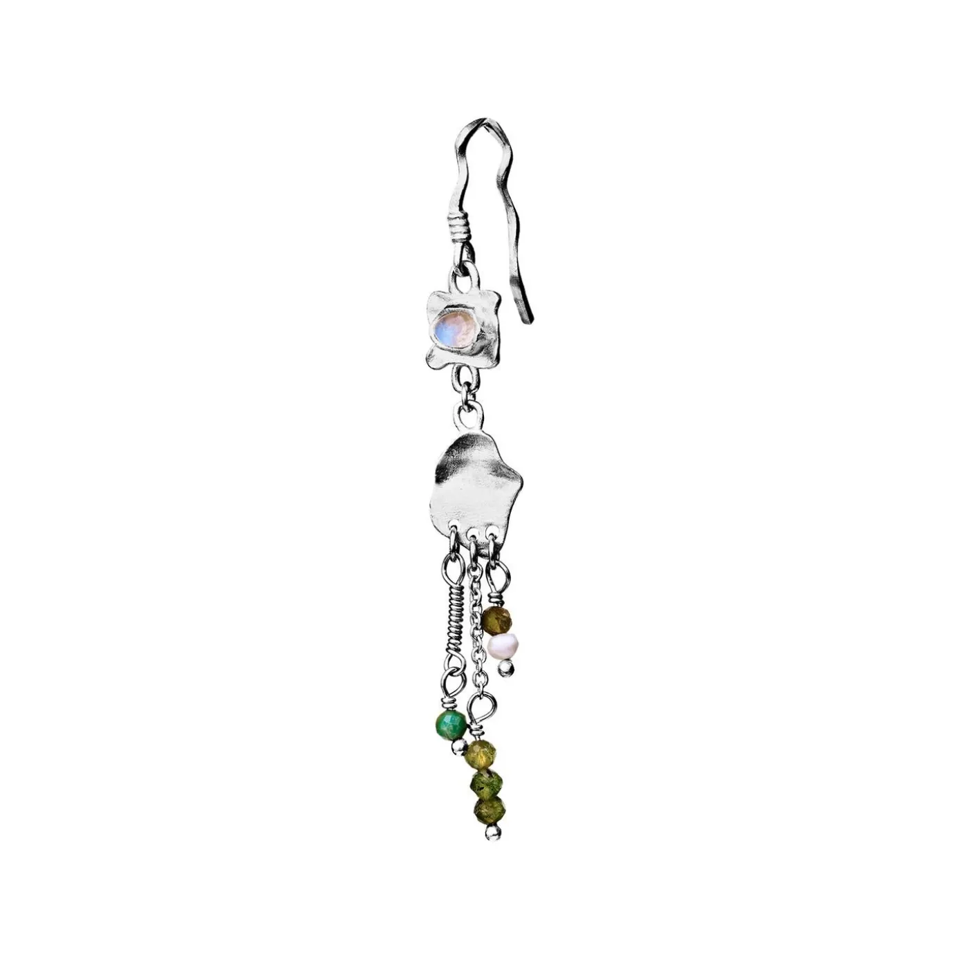 Alicia-Øreringene Er Et Symbol På At Gemme På Minder, Og Hvordan De Største Fortællinger Kan Være Skjult I De Mindste Ting. Øreringene Er Samlet Af En Række Små Skatte Med En Indrammet Regnbuefarvet Månesten. (Øreringene Sælges Enkeltvis)