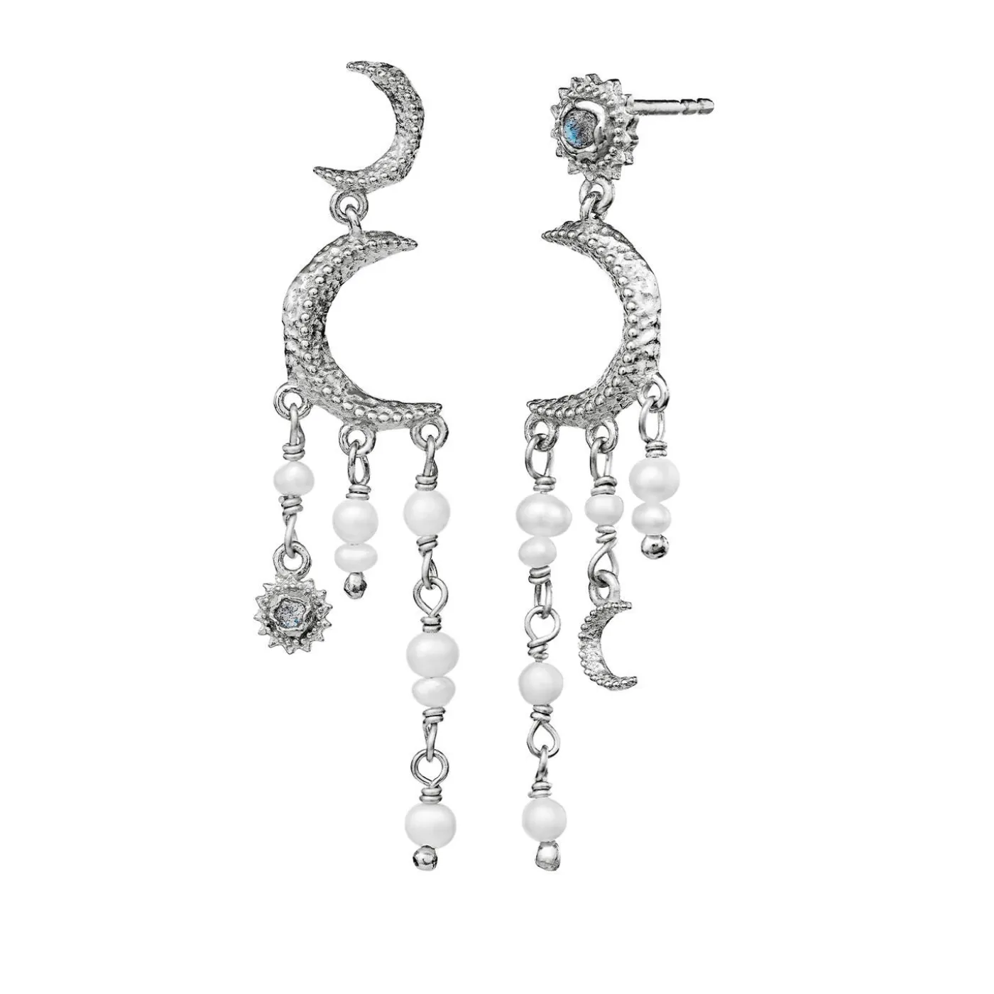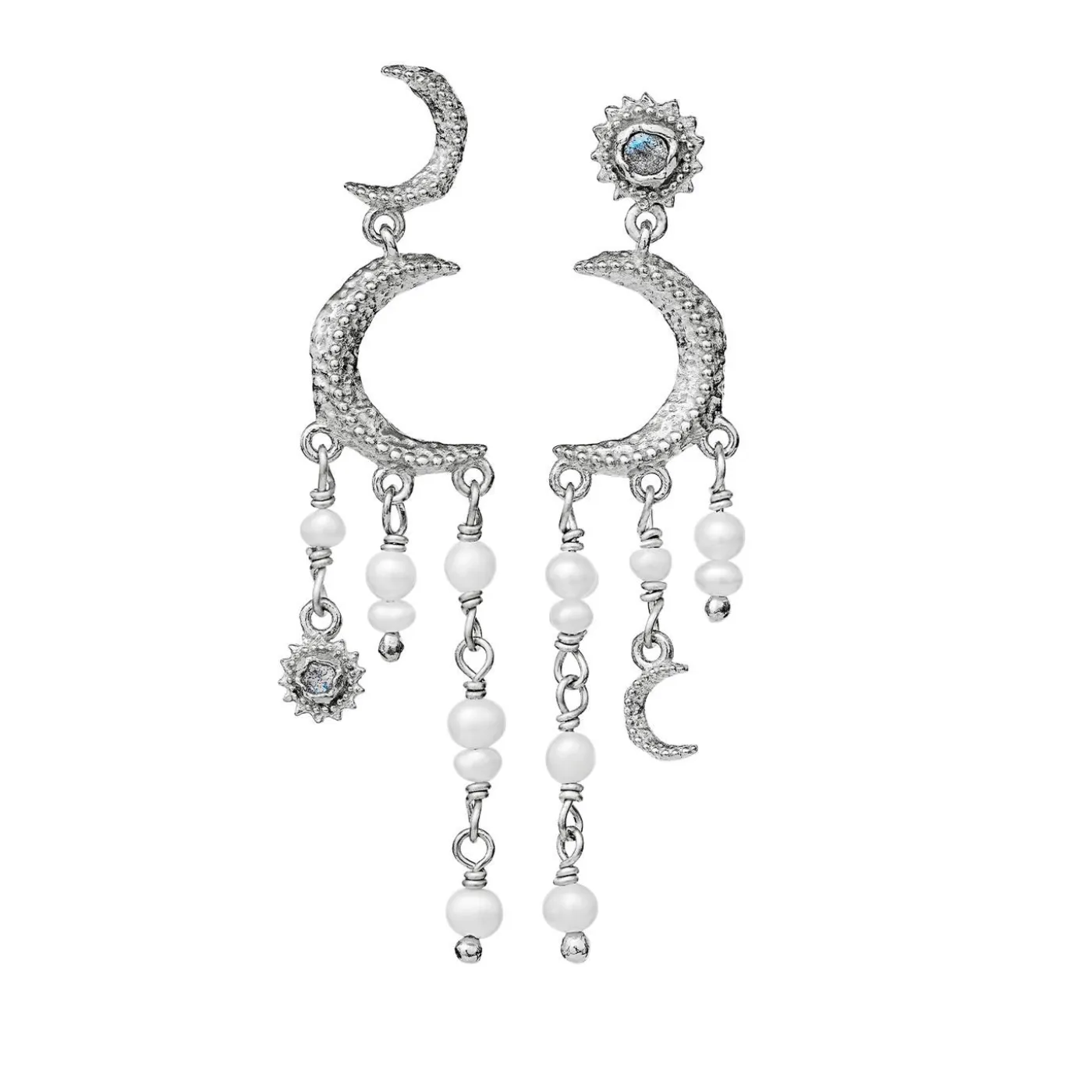 Labradorit Og Ferskvandsperler Er Det Vidunderlige Match I Astrea-Øreringene Og Står Med Deres Symbol For Solen Og Månen For Verdens Dualisme, Lys Og Mørke, Nat Og Dag.