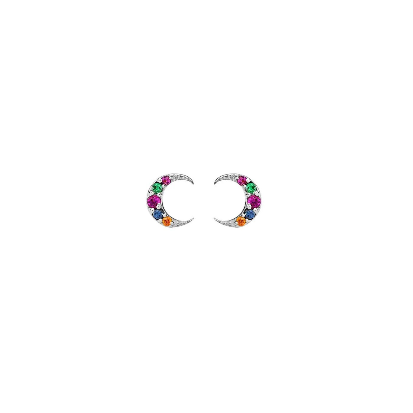 Måneformede Ørestikker Med Et Væld Af Indfattet Farvede Zirkoner, Der Understøtter Det Orientalske Look.