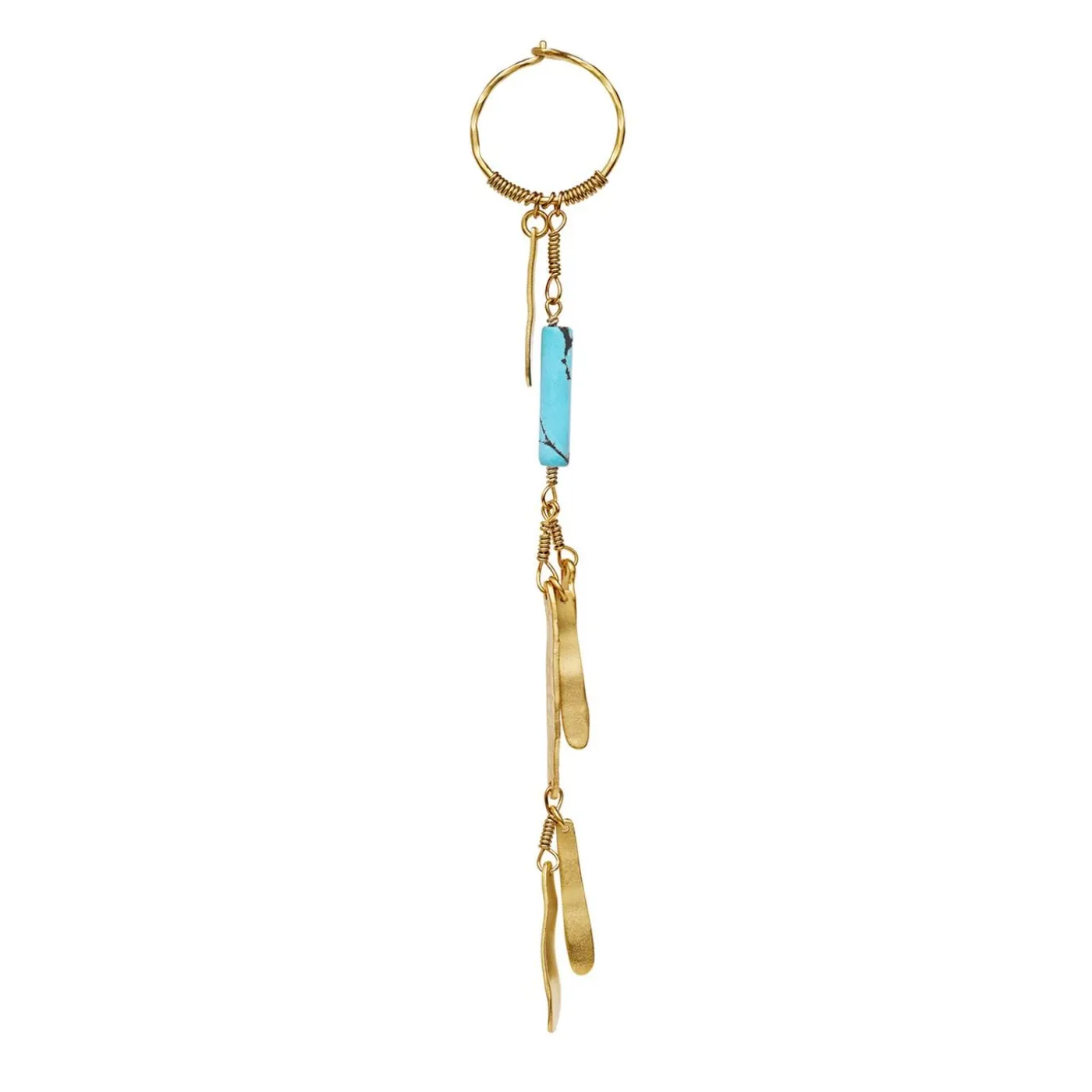 Cleo Er En Lang Ørering Med En Stor Turkis Og Gyldne Elementer. Den Har Et Dragende Udtryk Og Giver Dit Outfit En Cool Hippie Vibe.Materialer: Genanvendt Sterlingsølv (925) Belagt Med 18 Karat Guld Og Turkis.Størrelse: 95 Mm Long. Hoop: 15 Mm