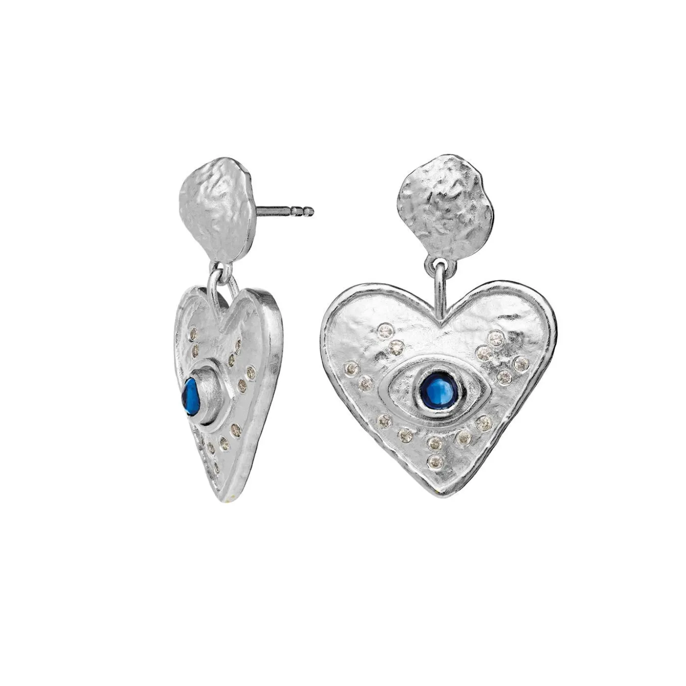 I Midten Af De Kærlighedsfyldte Constantine Earrings Blinker Den Blå Kyanit, Der På Græsk Kan Oversættes Til ’Mørkeblå’, Og Som Siges At Være En Afstressende, Healende, Beroligende Sten