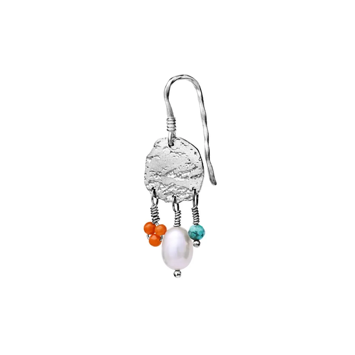 Elle Er Som En Lille Amulet Til Øret. Det Smukke Vedhæng Med Den Store Ferskvandsperle, Koraller Og En Turkis Giver Associationer Til Solen.Materialer: Genanvendt Sterlingsølv (925), Ferskvandperle, Koral Og Turkis.Størrelse: 35 Mm Lang Og 13 Mm Bred