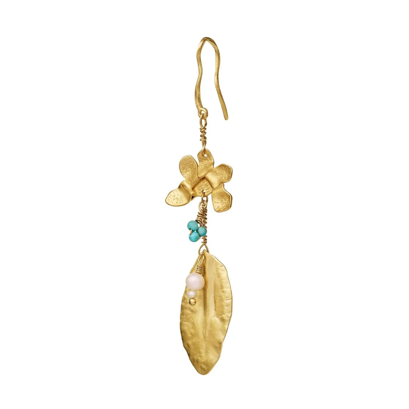 Esme Er Som En Vild Blomst, Der Opmuntrer Dig Til At Leve Frit Og Omfavne Livet. Øreringen Er Lavet Af Kraftfulde Sten Og Gyldne Elementer.Materialer: Genanvendt Sterlingsølv (925) Belagt Med 18 Karat Guld, Ferskvandsperle Og Turkis.Størrelse: 72,5 Mm Lang Og 18,4 Mm Bred
