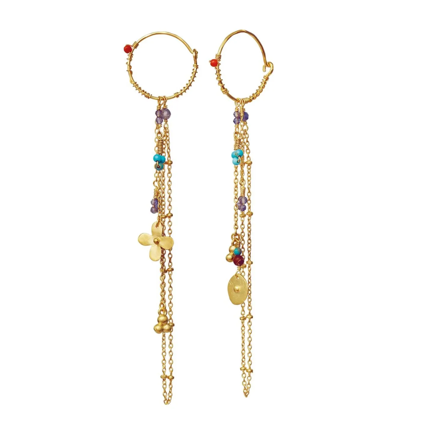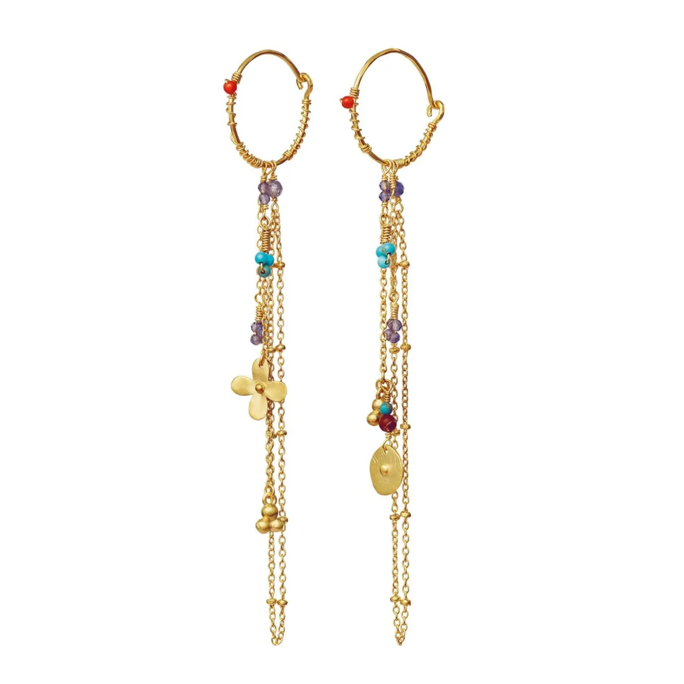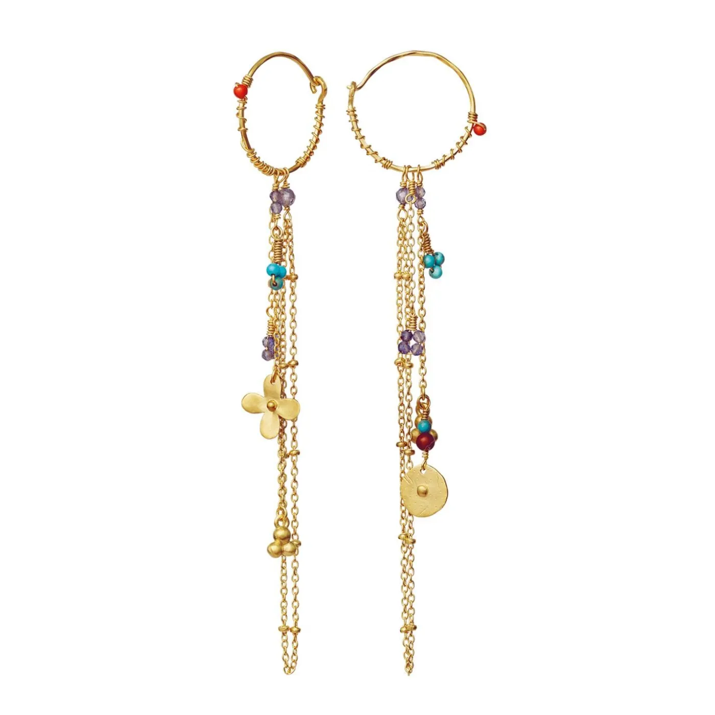 Lad Solens Stråler Danse Og Reflektere I Gyldne Blomster, Kæder Og Sten. Flickering Light Earrings Fanger Solstråler Og Måneskin Og Transformerer Det Til Sit Eget Indre Lys.Øreringene Er En Del Af Samarbejdet, Olga Bonne X Maanesten, Der Fortolker Barndommens Oplevelser I Naturen Og Følelsen Af At Fortabe Sig I Skoven, Ved Markerne Og Havet.