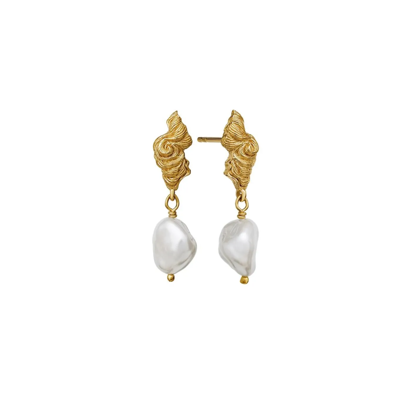 Smuk Og Abstrakt Ørestikker Med En Medium Størrelse Barok Perle Som Elegant Hænger Fra Ørestikken.
