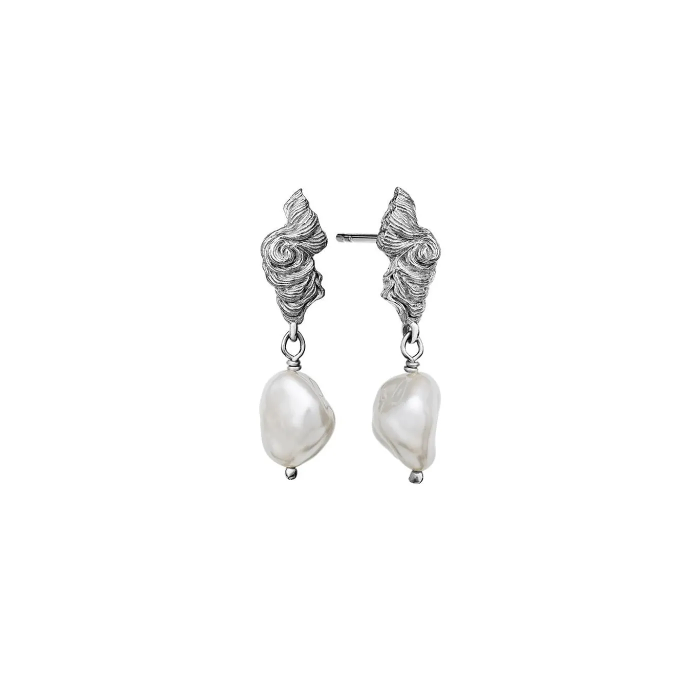 Smuk Og Abstrakt Ørestikker Med En Medium Størrelse Barok Perle Som Elegant Hænger Fra Ørestikken.