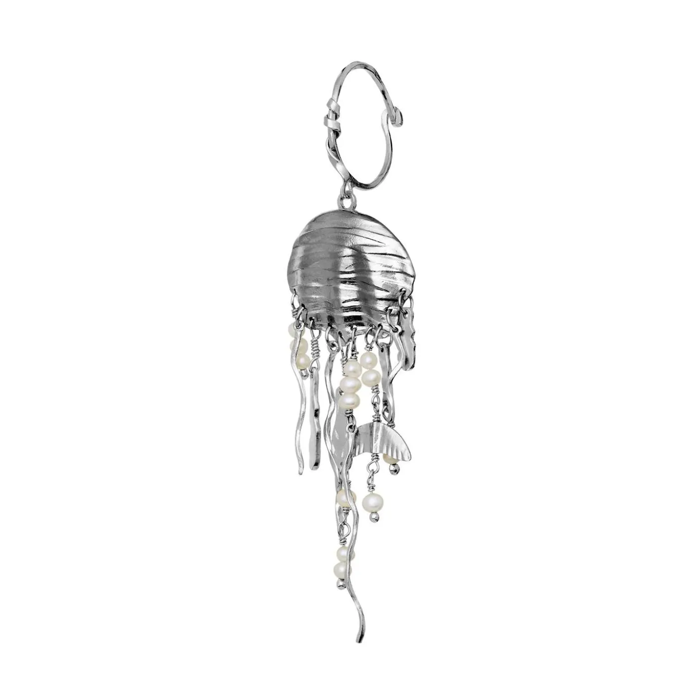 Ligesom En Mangestrenget Vandmand, Drypper Maisie Øreringen Med Gyldne Tråde Af Aflange Guldplader Og Asymmetriske Ferskvandsperler.