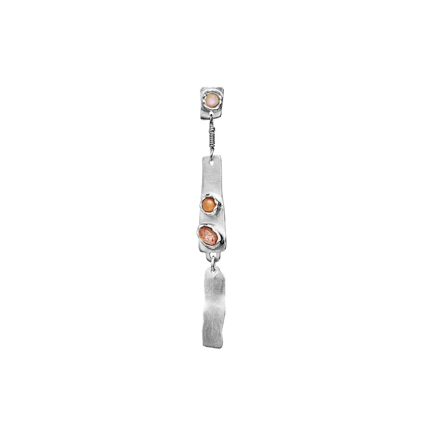 På Merle-Øreringen Ligner Det, At Farven På De Gyldne Sten Er Blevet Skabt Af Solens Stråler.Materialer: Genanvendt Sterlingsølv (925), Månesten, Solsten Og Etio-Pisk Opal.Størrelse: 55 Mm Lang Og 5 Mm Bred