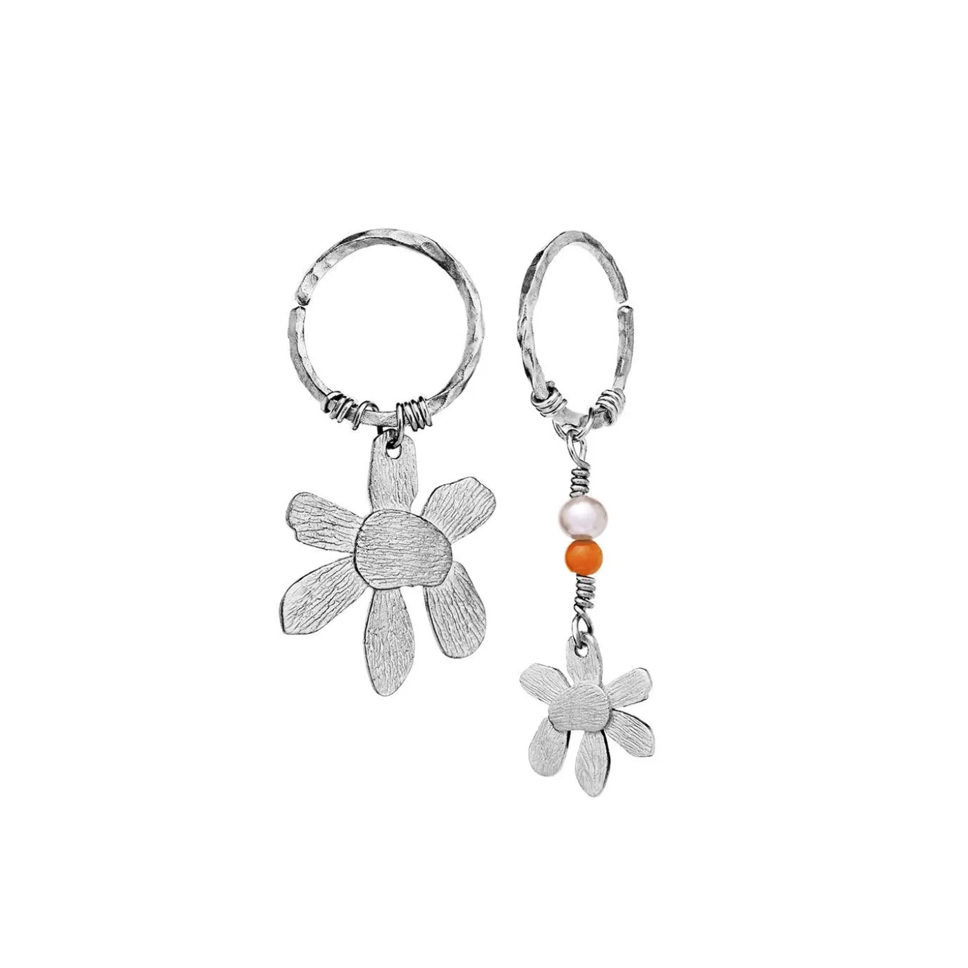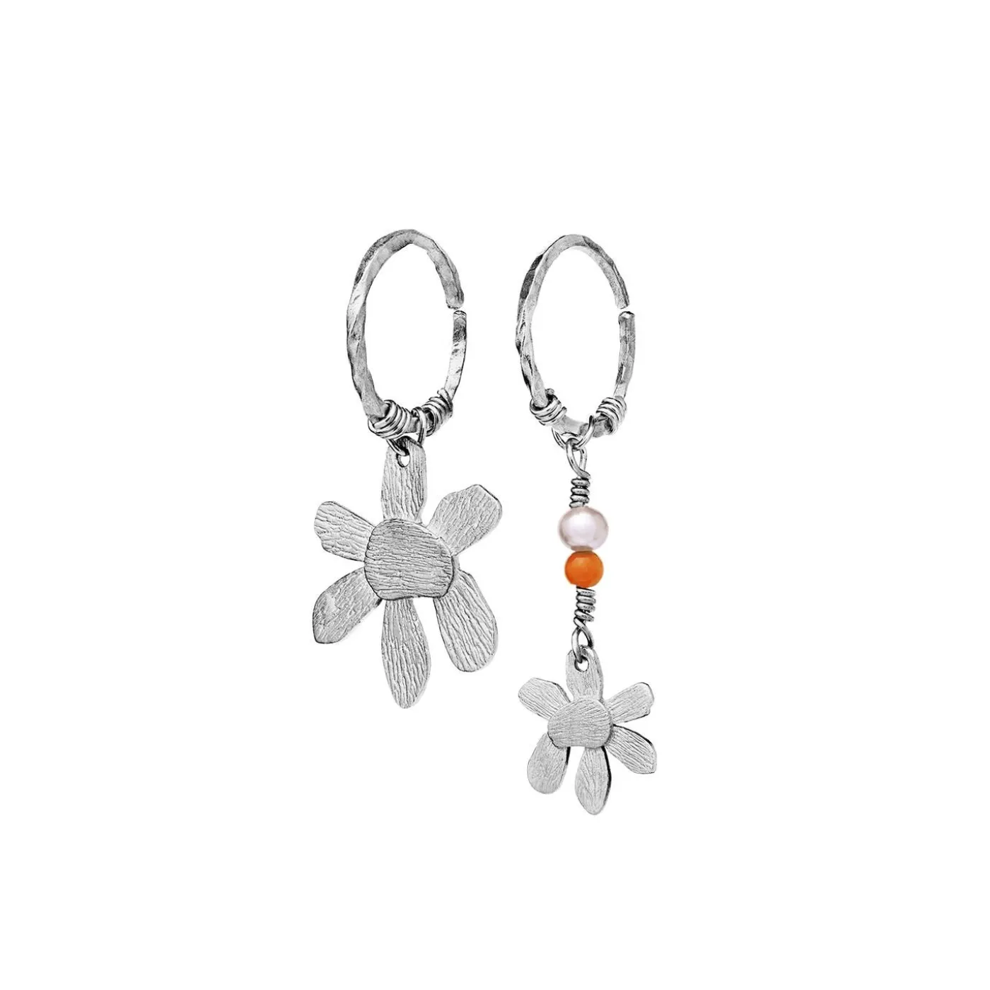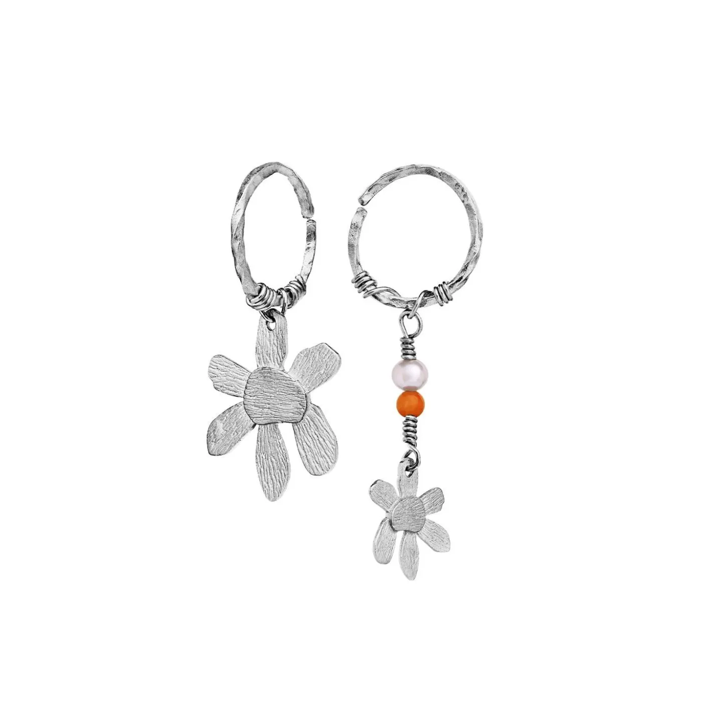 Mette Er Et Par Øreringe Med Et Legende Udtryk. De Har Forskellige Vedhæng Med En Stor Og En Lille Blomst, En Koral Samt En Ferskvandsperle.Materialer: Genanvendt Sterlingsølv (925), Pink Ferskvandsperle Og Koral.Størrelse: 37/28 Mm Long And 14,2/9 Mm Wide