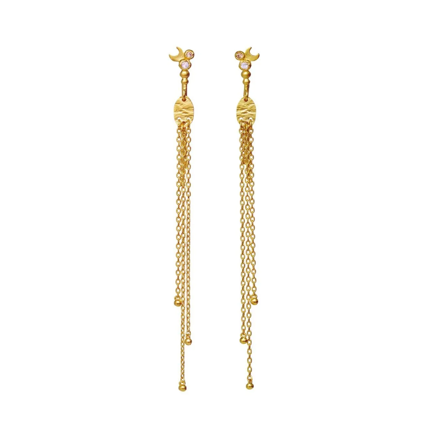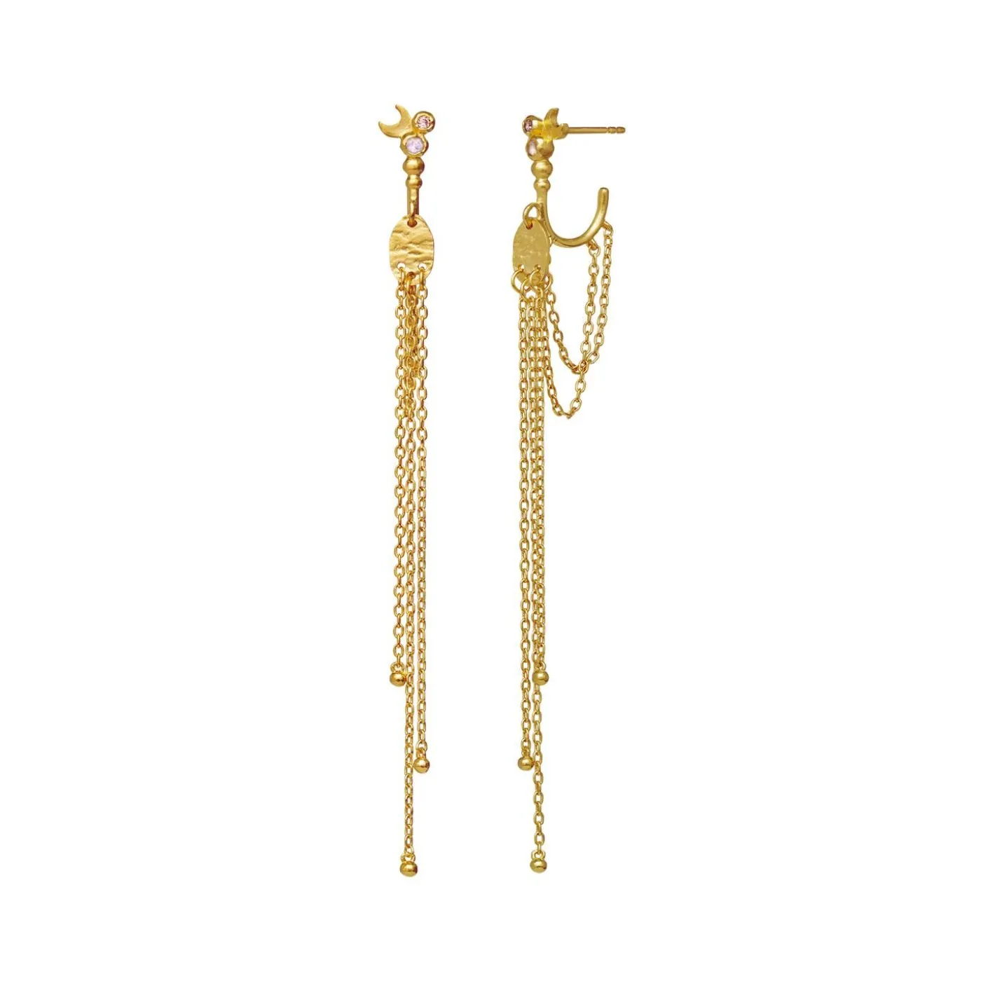 Måner Og Zirkoniaer Samler De Fine, Glimtende Kæder I Nixi Earrings, Der Med Sine Regnbuemånesten Giver Et Legende Spil Af Lys.