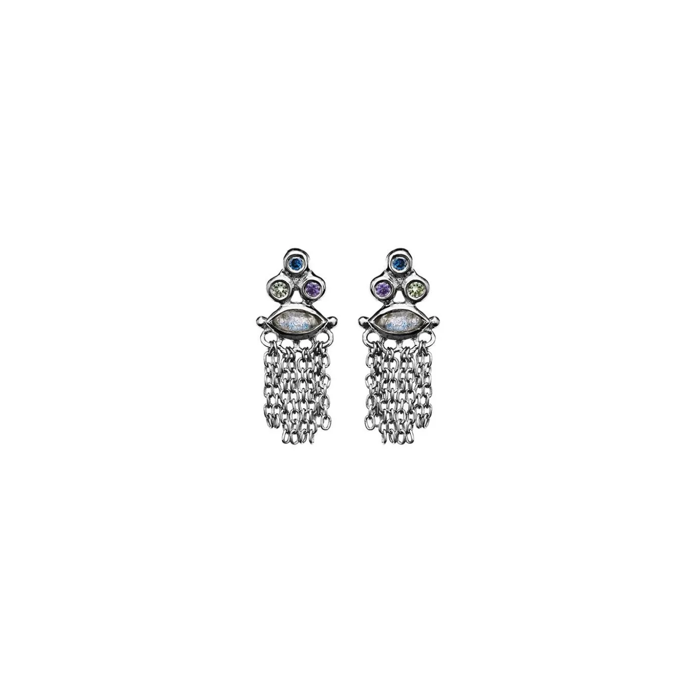 Fortryllende Pina Ørering Er En Sammensætning Af Tre Små Sten Og En Større Labradorit.