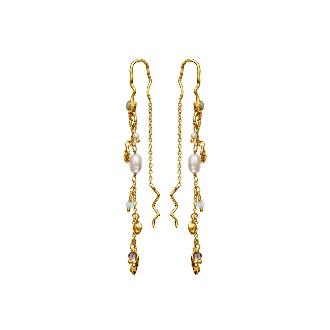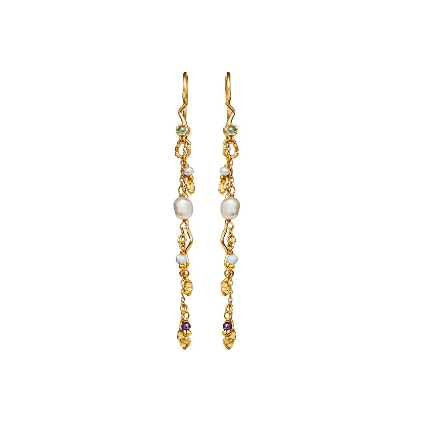 Poppy Er En Unik Og Feminin Ørering, Med Forskellige Sten, En Ferskvandsperle Og Snoede Detaljer.