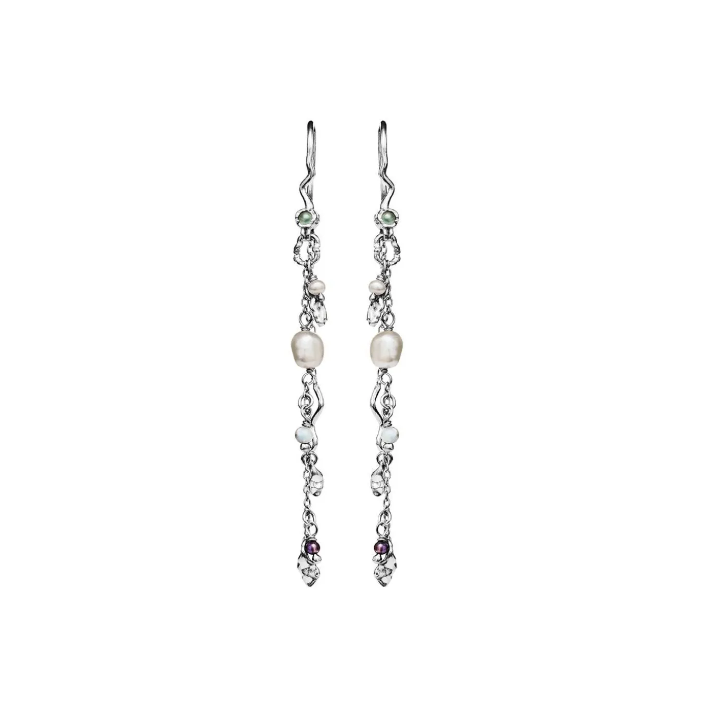Poppy Er En Unik Og Feminin Ørering, Med Forskellige Sten, En Ferskvandsperle Og Snoede Detaljer.