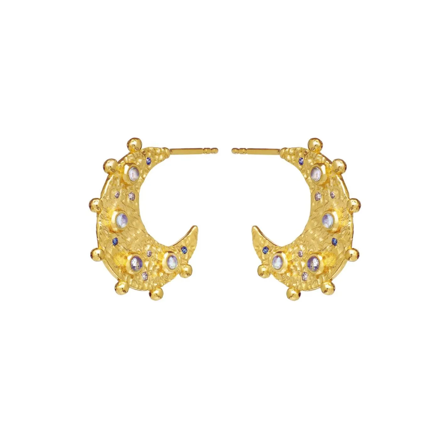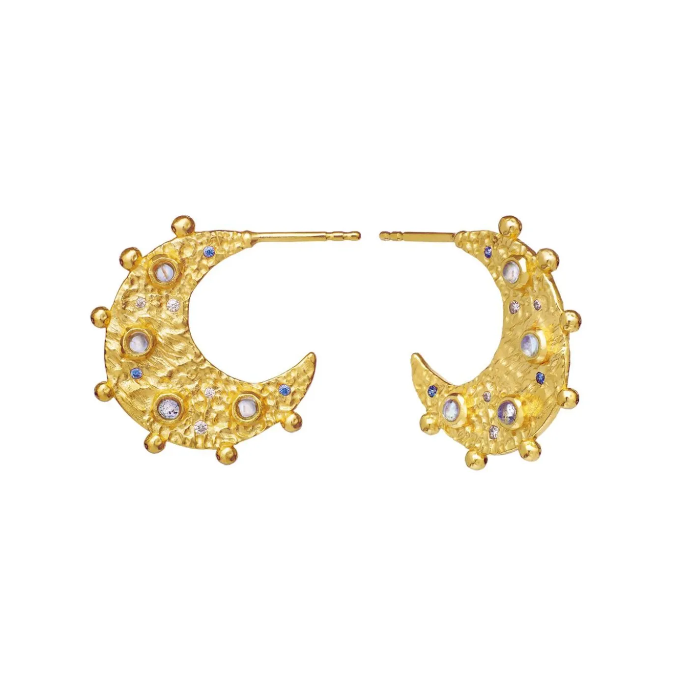 Masser Af Fine Sten Glimter I Sadiq Earrings, Der Er Formet Som Små Halvmåner Og Symboliserer Solens Gang Over Himlen.