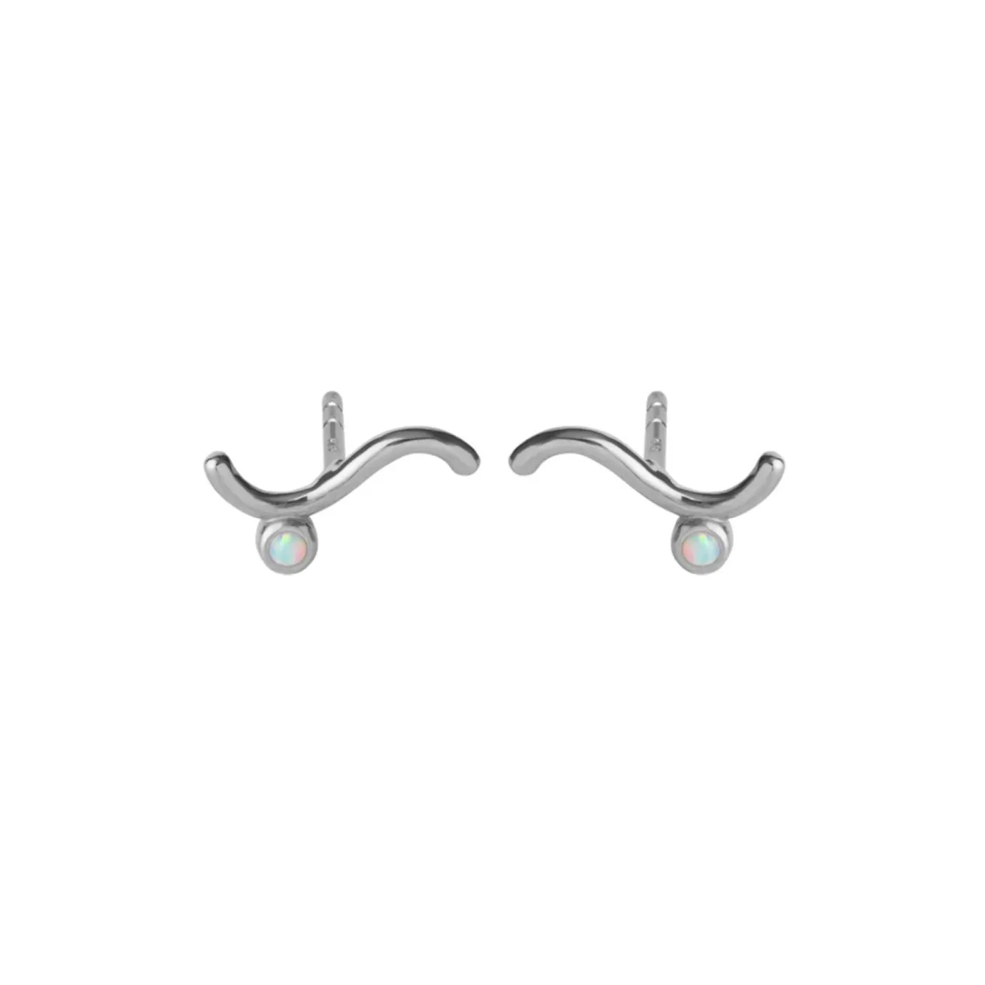 Enkel Bølget Ørestik Med Indfattet Hvid Opal. En Fin Hverdagsørestik Som Både Kan Bæres Alene Og Sammen Med Andre Øreringe.