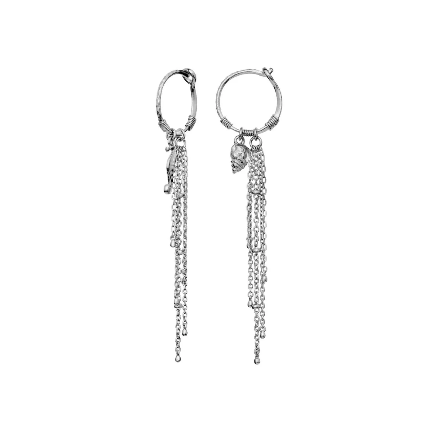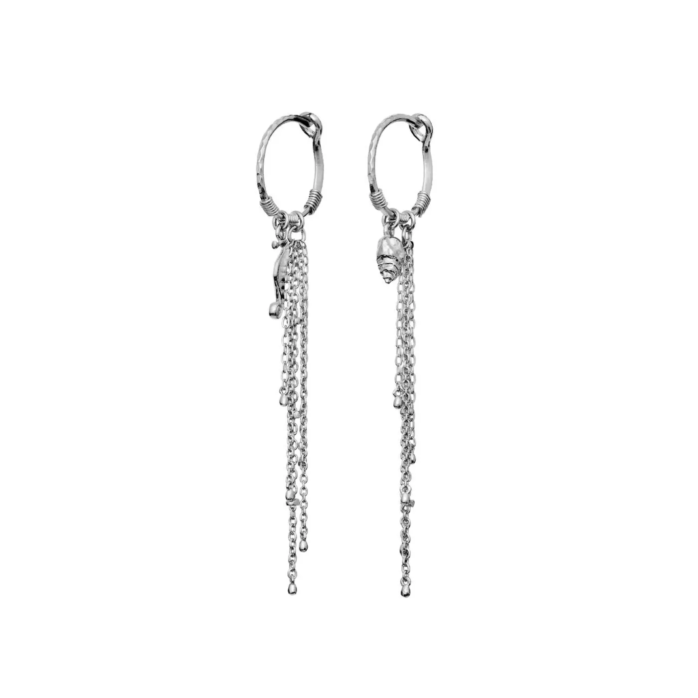 En Elegant Ørering Smykket Med Små Vedhæng Fra Havet Samt Asymmetriske, Svajende Kæder Gør Sereia Øreringen Til Prikken Over I’Et For Den Moderne Havfrue.