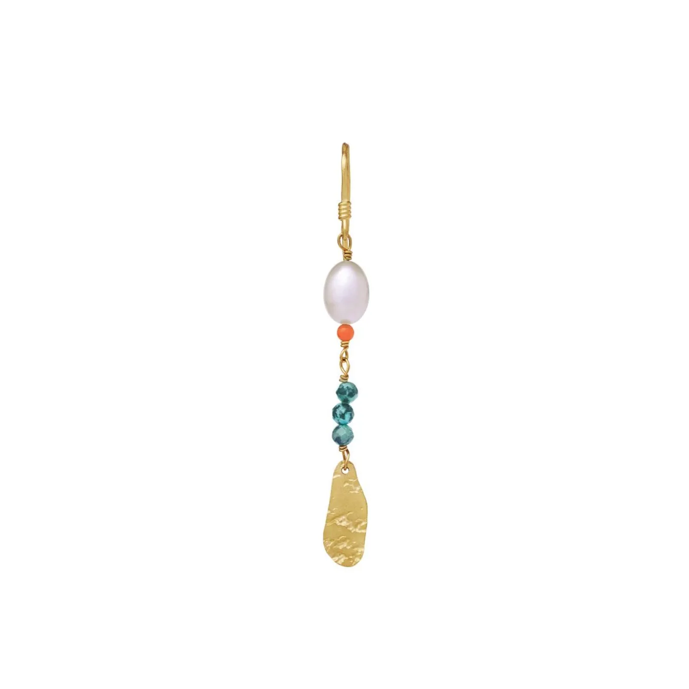 Thea Er En Farverig Ørering Med Sine Mange Sten. Vedhænget Består Af En Ferskvandsperle, Tre Turkiser, En Koral Og Et Gyldent Element.Materialer: Genanvendt Sterlingsølv (925) Belagt Med 18 Karat Guld, Ferskvandsperle, Koral Og Turkis.Størrelse: 56 Mm Lang Og 6 Mm Bred