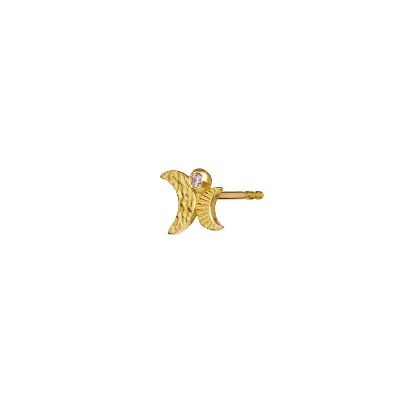 Månens Forskellige Faser Fra Tiltagende Til Aftagende Ses I Twilla Single Ørering, Hvis Champagnefarvede Zirkonia Symboliserer Solen.