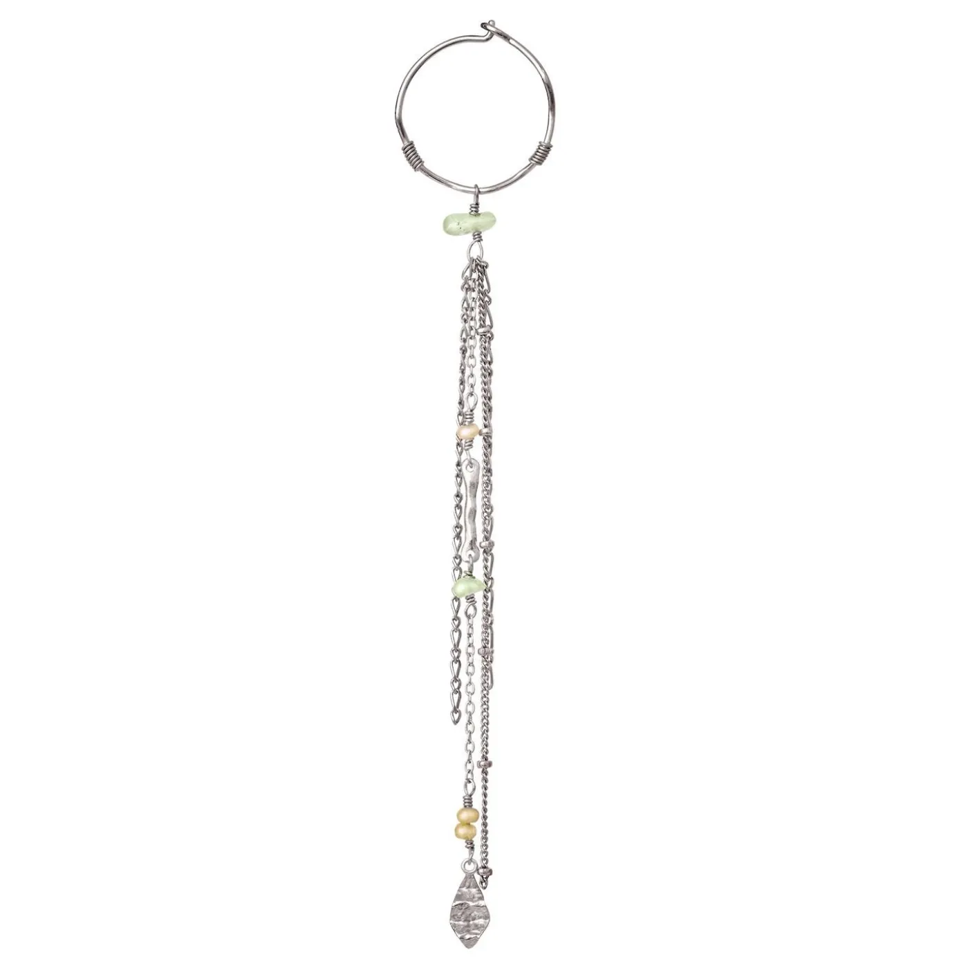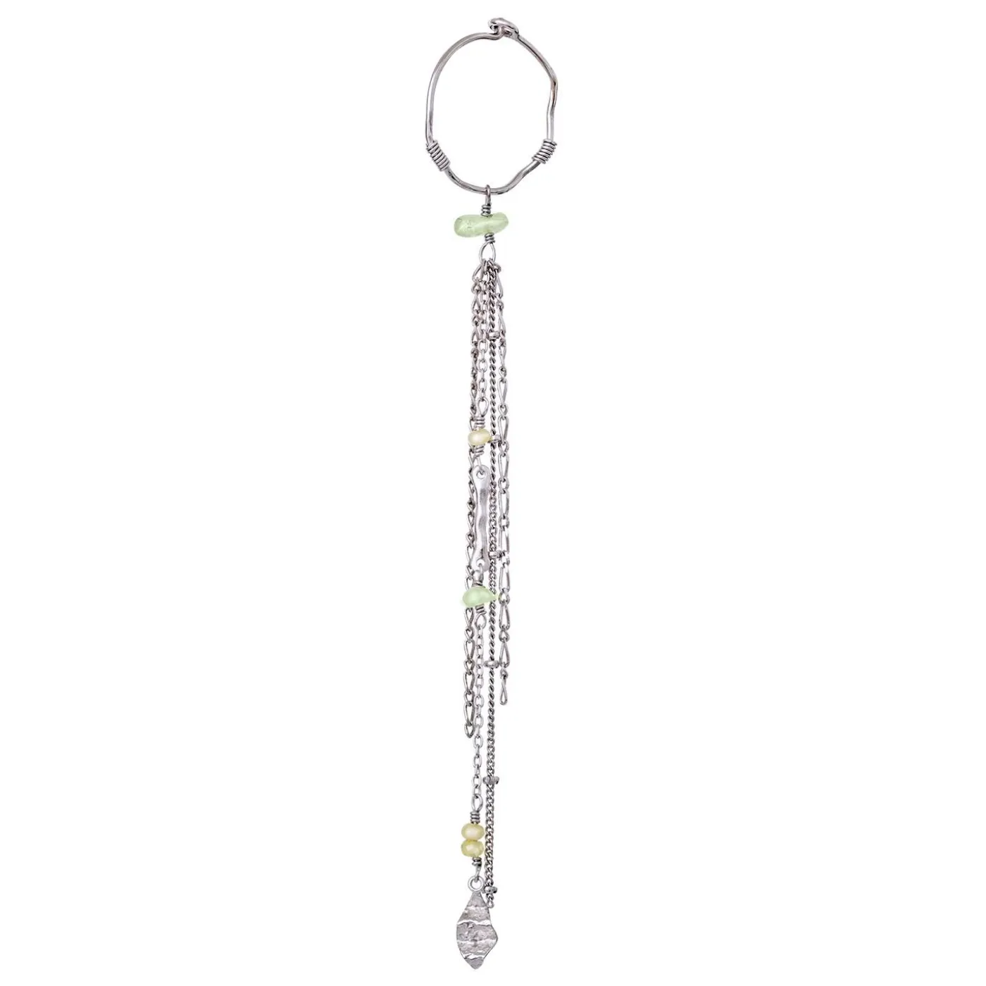 Oplev Den Æteriske Charme I Maanestens Upcycled Melting Frost Single Ørering. Øreringen Er Lavet Af Genbrugsmaterialer Og Har Et Fængslende Design Af Lysegrønne Sten, Der Falder Ned Fra En Buet Sølvring Og Minder Om Smeltende Is.