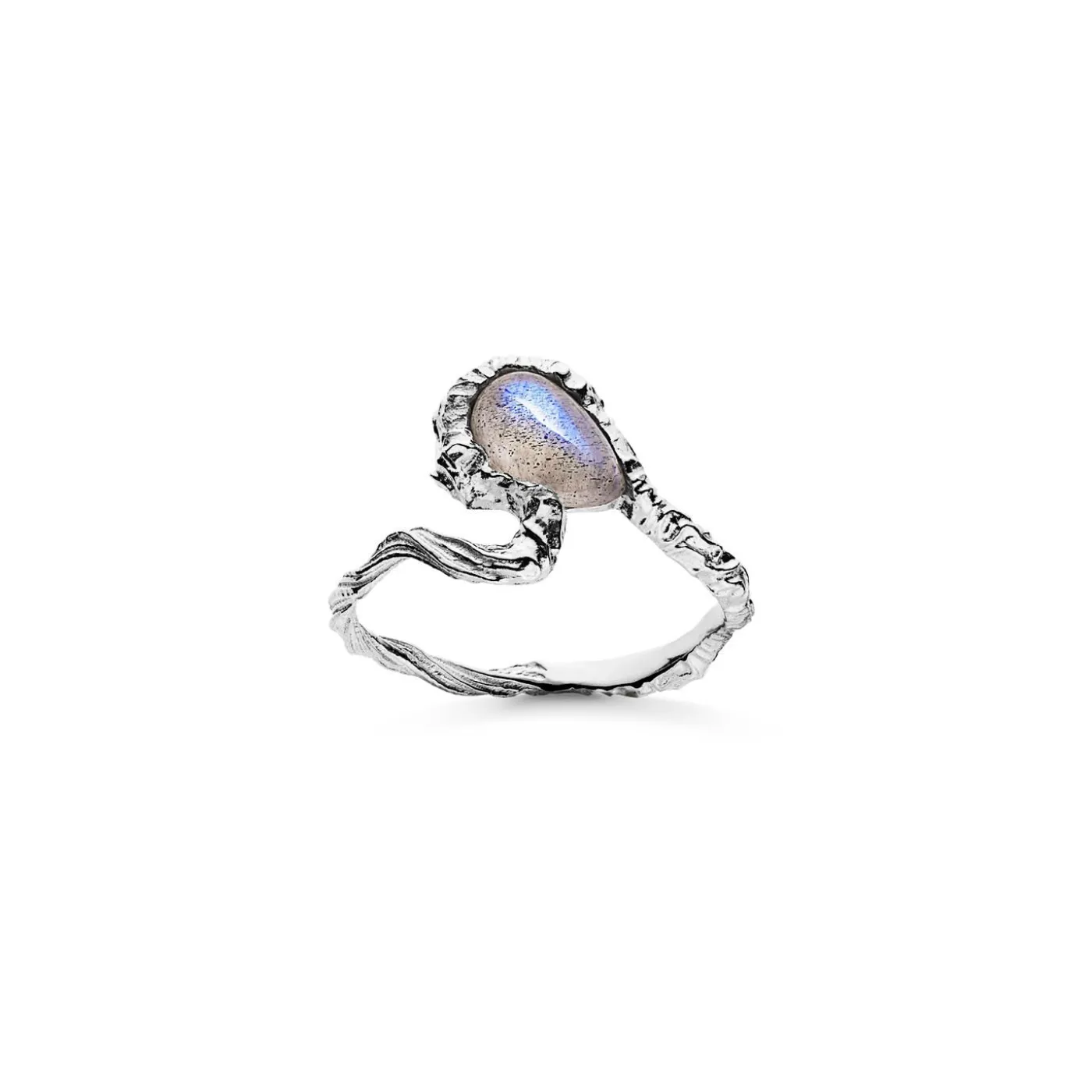Alba Ringen Har En Flot Snoet Og Bølget Tekstur, Der Sammensmeltes Med En Smuk Mandelformet Labradorit