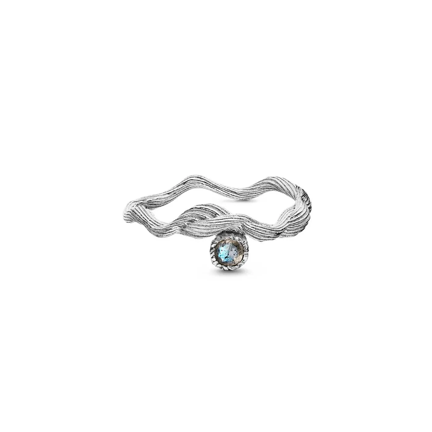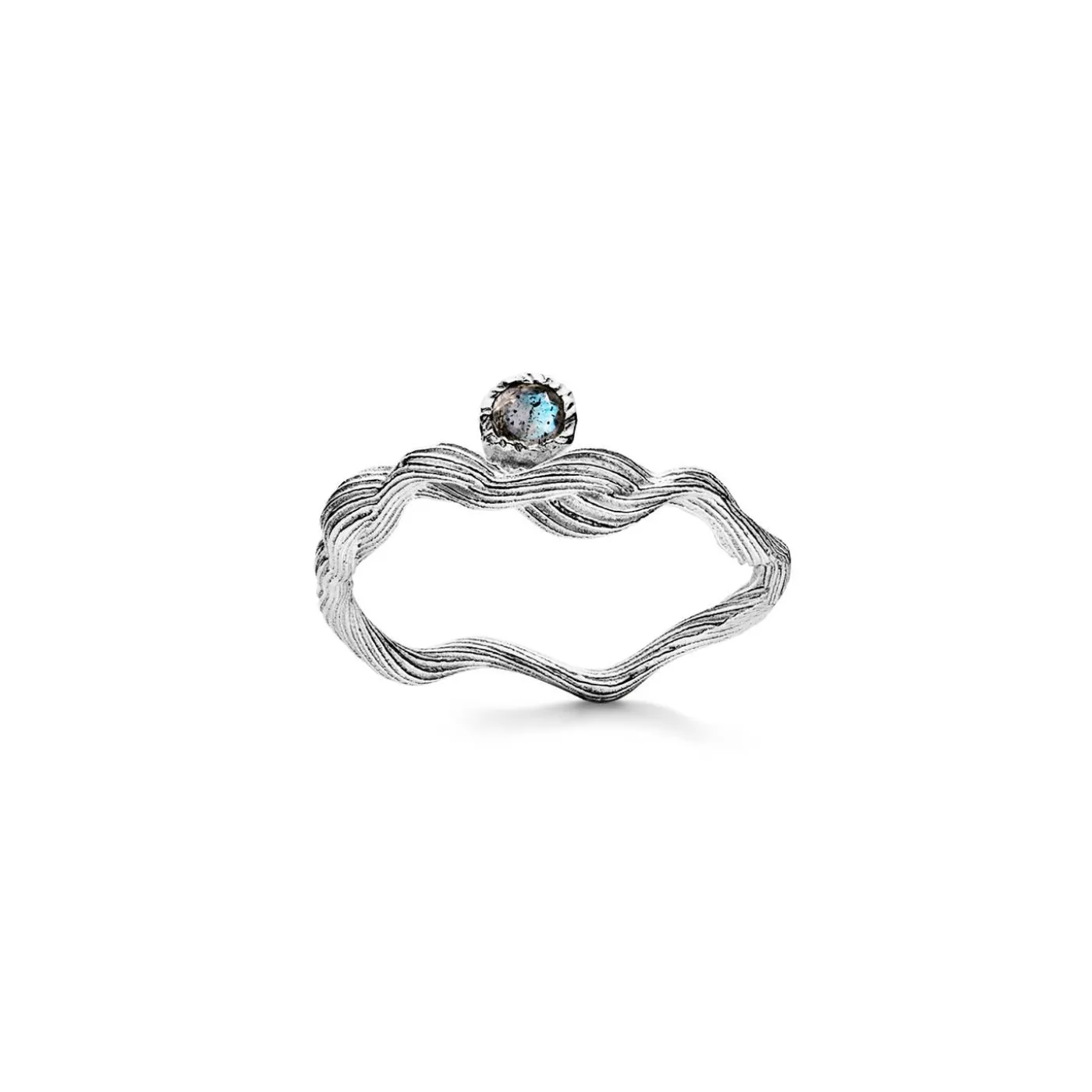 Ara Ringen Har Flotte Organiske Linjer Der Fletter Sig Om Hinanden Med En Funklende Facetteret Labradorit