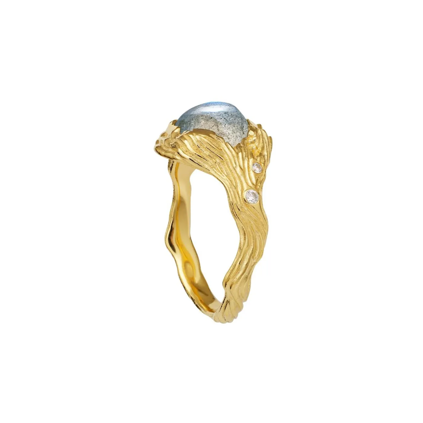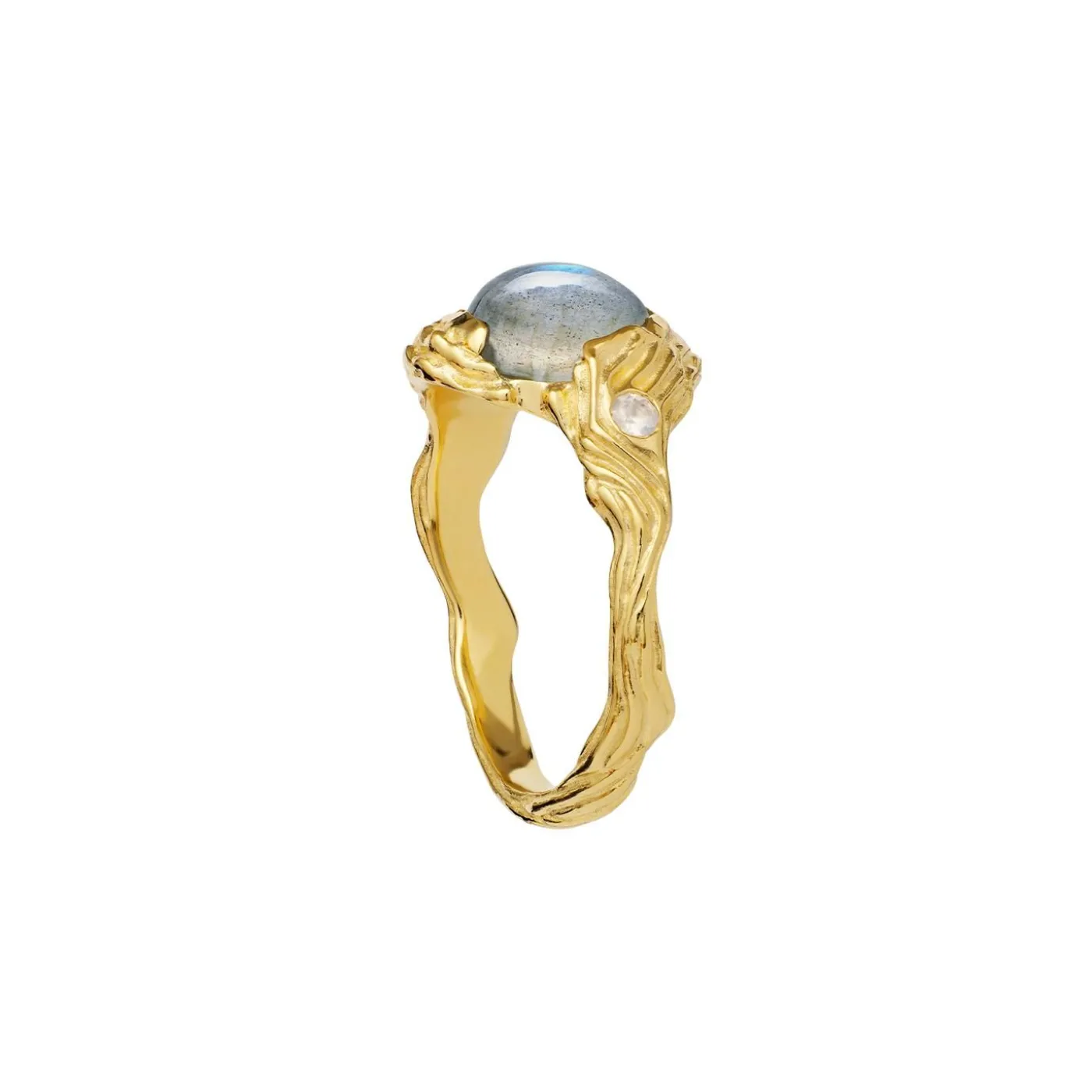 Calypso Består Af En Smuk Labradorit, En Månesten Og Små Zirkonia. Labradorit Er En Meget Ener-Gigivende Sten, Der På Trods Af Sit Mørke Ydre Vil Bringe Dig Lys Og Udholdenhed. Det Siges, At Ste-Nen Kan Forbinde Din Spirituelle Energi Med Din Krop.Materialer: Genanvendt Sterlingsølv (925) Belagt Med 18 Karat Guld, Labradorit, Månesten Og Hvid Zirkonia. Da Stenen Er Natursten Kan Farven Variere.
