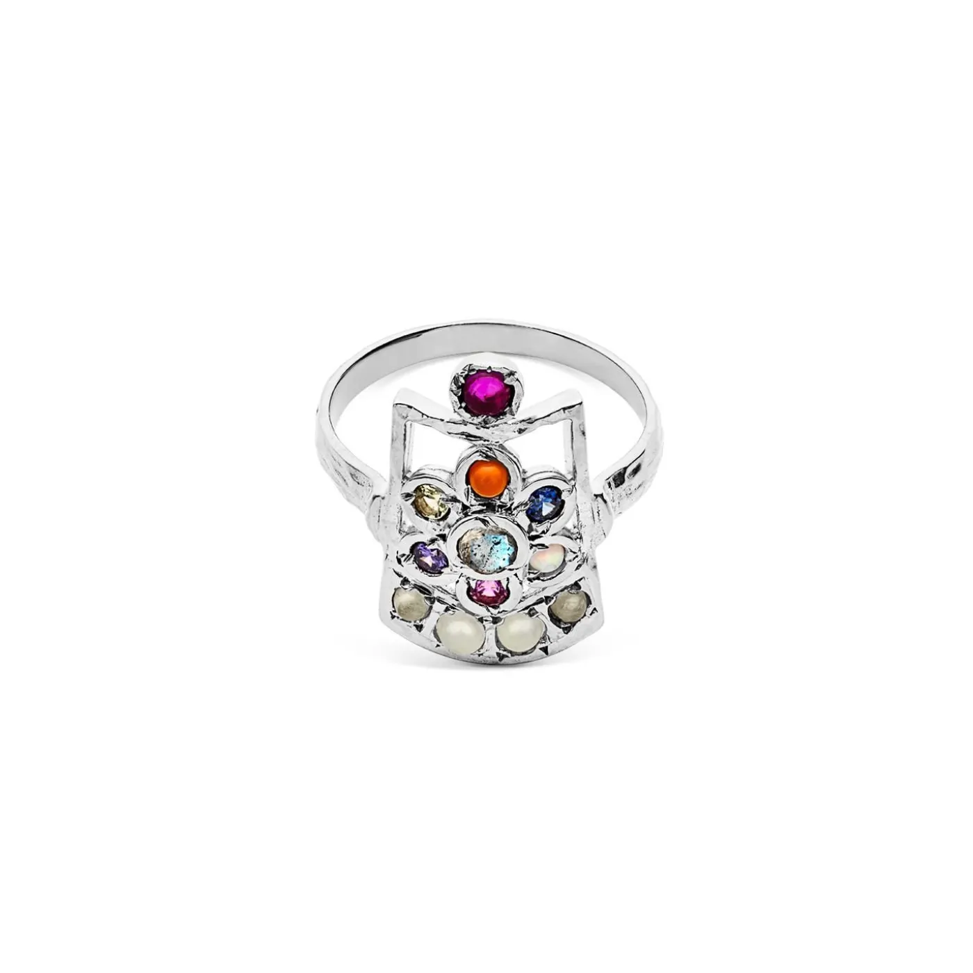 Den Eksklusive Kamela Ring Er En Symfoni Af Farverige Sten, Der Tager Form Som En Blomst.