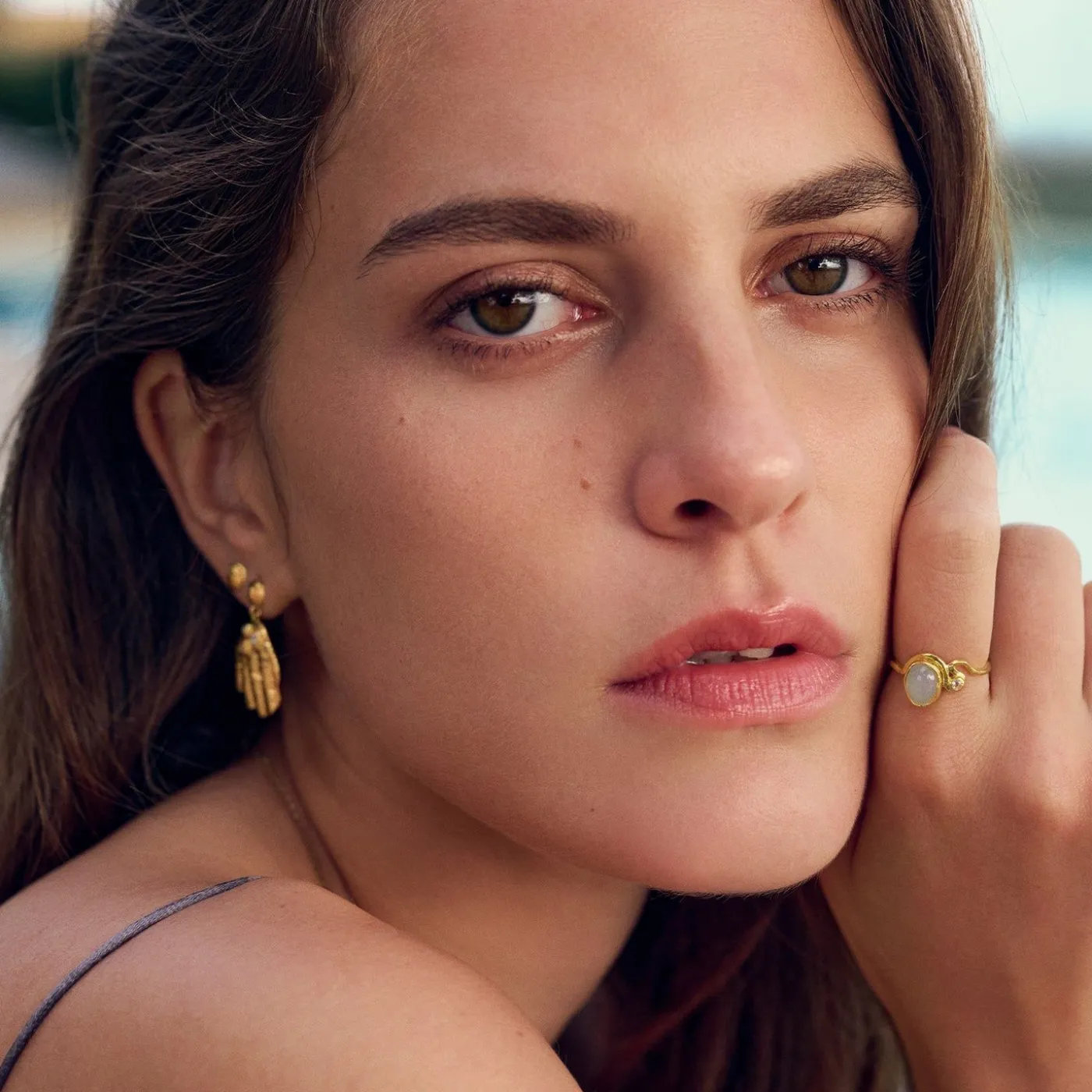 Ligeså Forførende Som En Havfrue, Former Lorelei Ringen Sin Egen Vej Omkring Fingeren, Hvor Den Finder Den Balance Omkring En Rolig Aqua Chalcedon Og En Harmonisk Regnbuemånesten.
