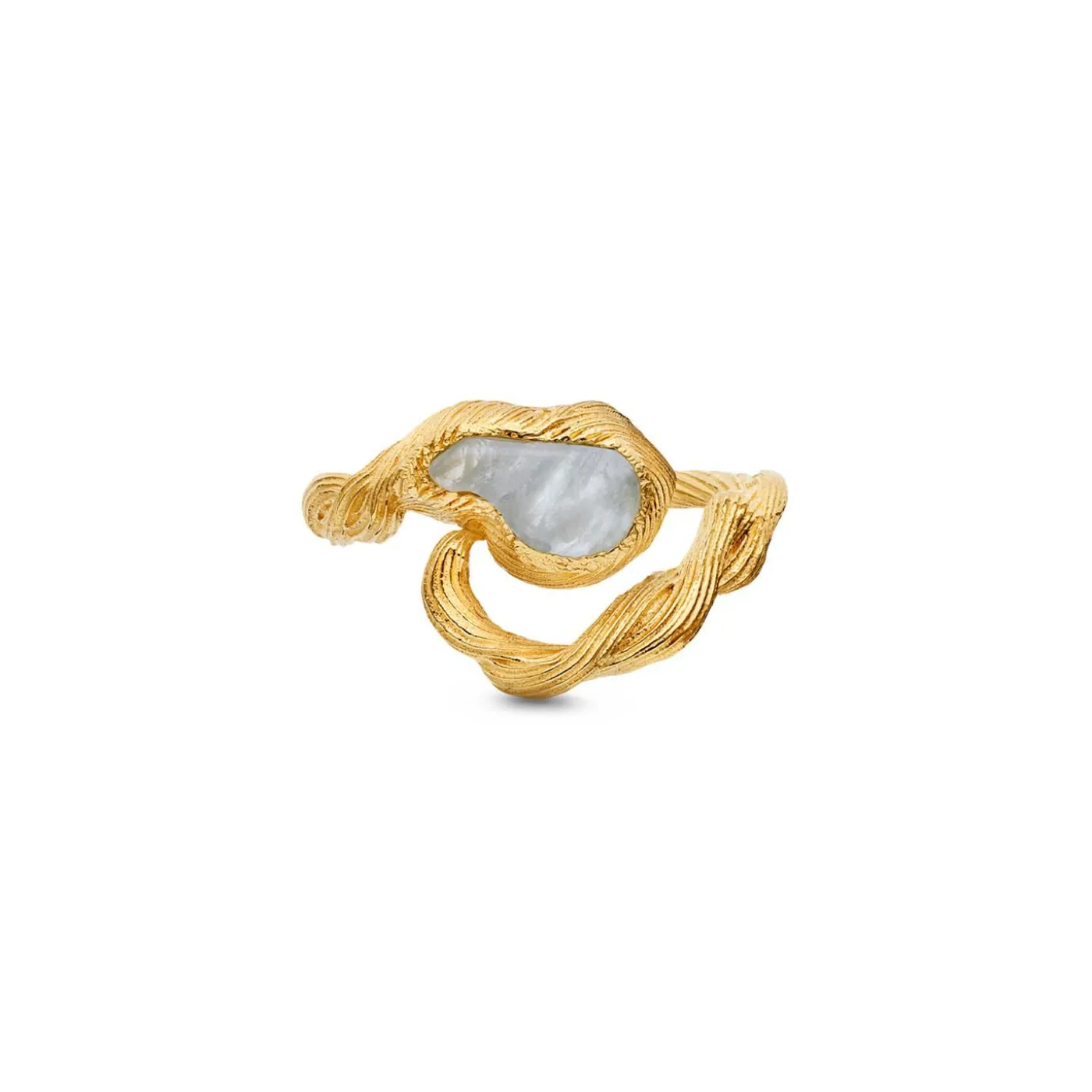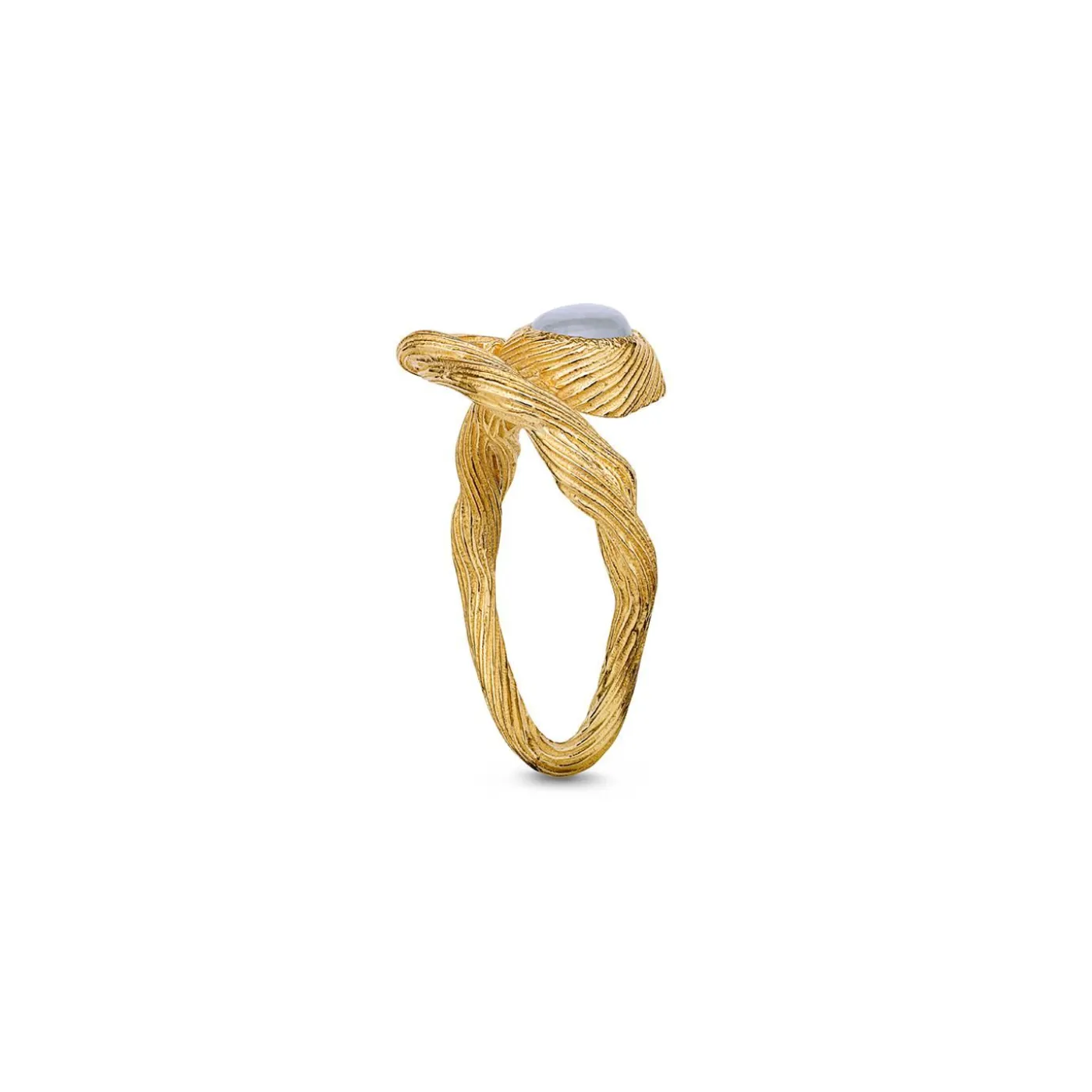 Whirlpool Ringen Har Fine Linjer, Der Snor Sig Om Hinanden Og Rundt Om En Smuk Dråbeformet Akvamarin