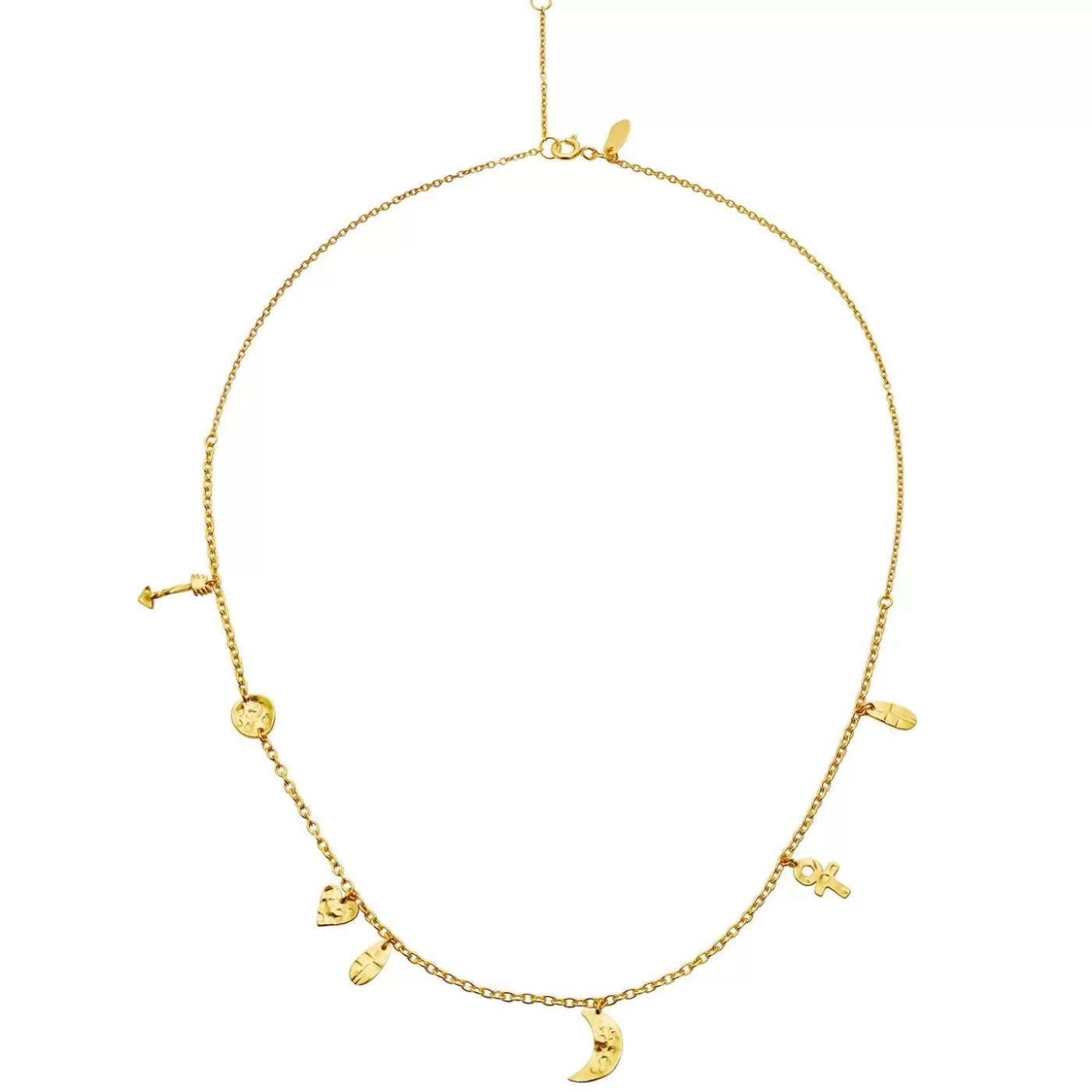 Cresida Necklace Er En Del Af Maanesten’S A/W23-Kollektion, Moon Hunter, Der Er Inspireret Af Den Græske Gudinde, Artemis, Gudinde For Jagt Og Beskytter Af Unge Kvinder. Halskæden Er En Samling Af De Smukke Symboler, Der Findes I Artemis’ Univers: Pilen, Kvindetegnet, Hjertet Og Artemis’ Mest Brugte Symbol, Månen.