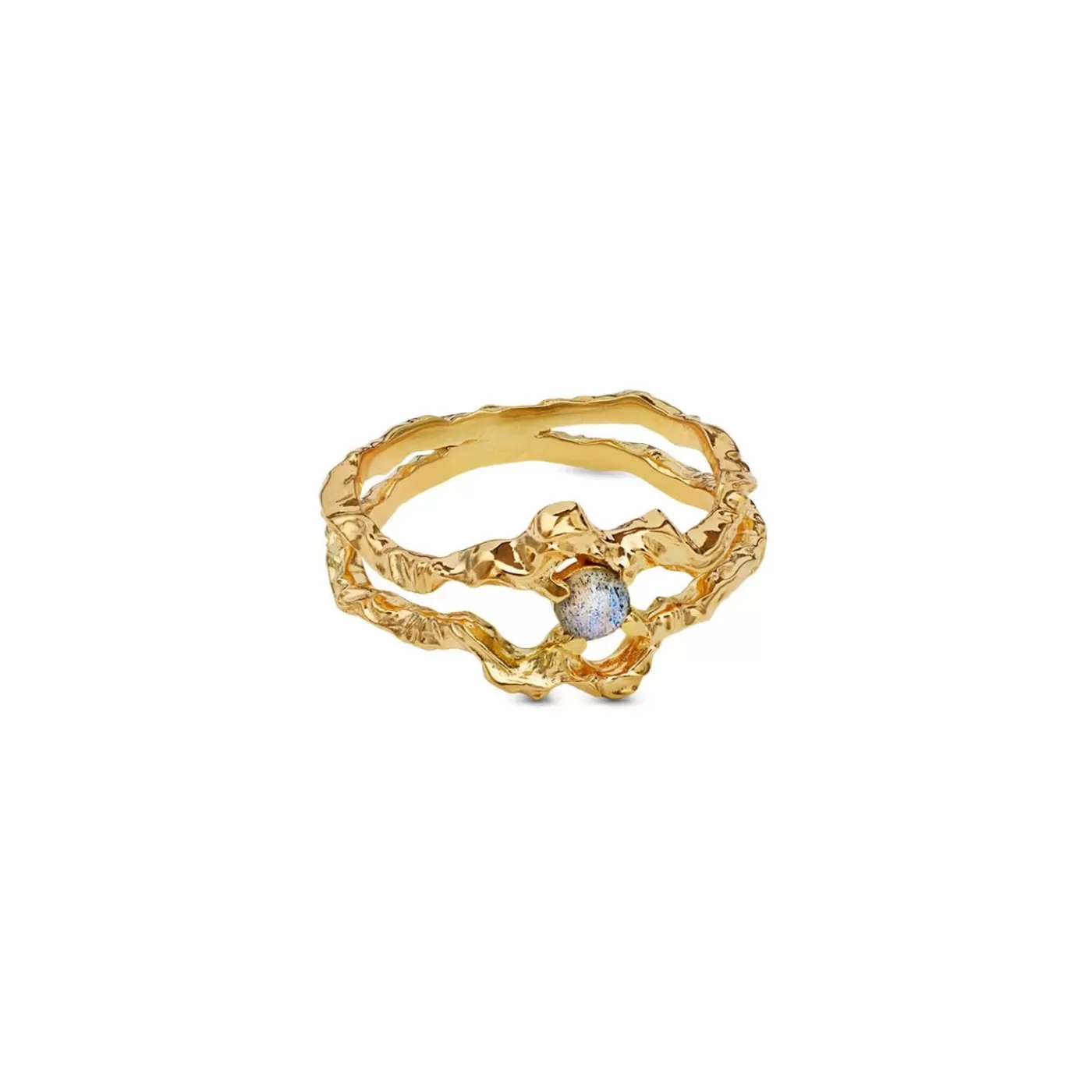 Shelly Ringen Er En Abstrakt Musling Som Gemmer På En Facetteret Labradorit